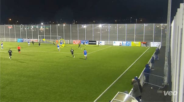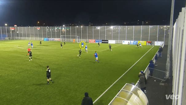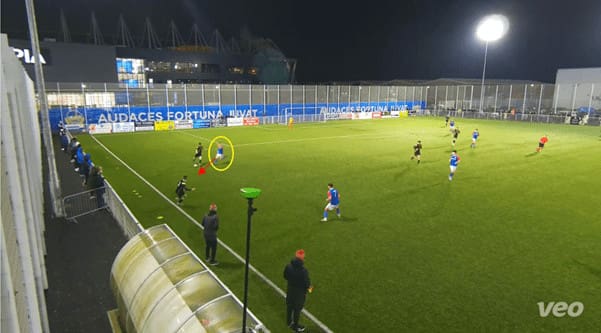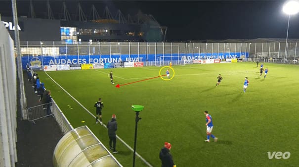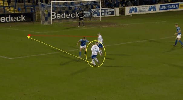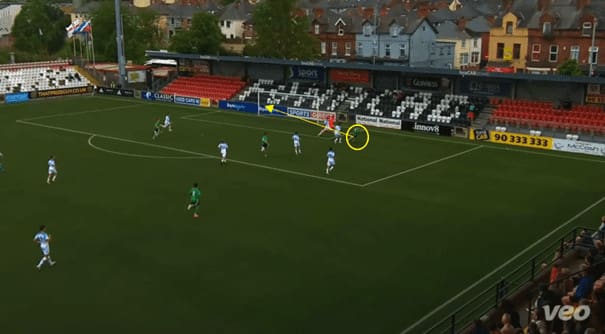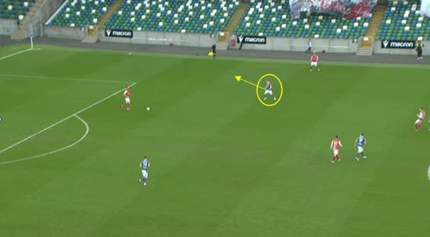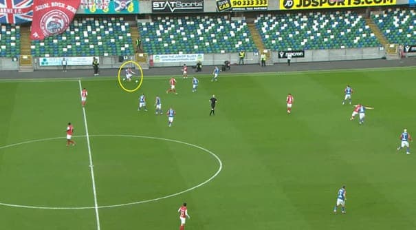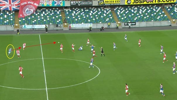 This allows Linfield’s midfielders, who are marking the opposition tightly, to win the ball back or force the opposition to play backwards.