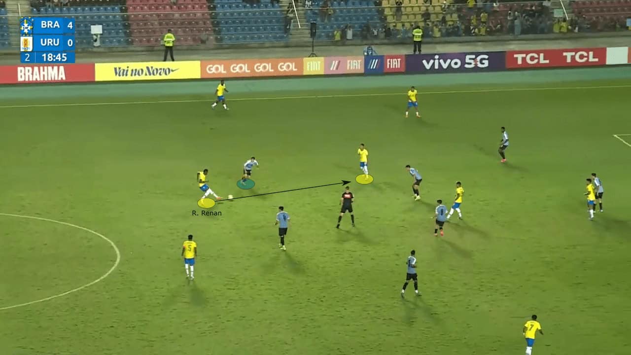 With two great ball-playing centre-backs in Kaiky and Robert Renan, Andrey was able to constantly find gaps within the defensive organisation to receive the ball before progressing it further.