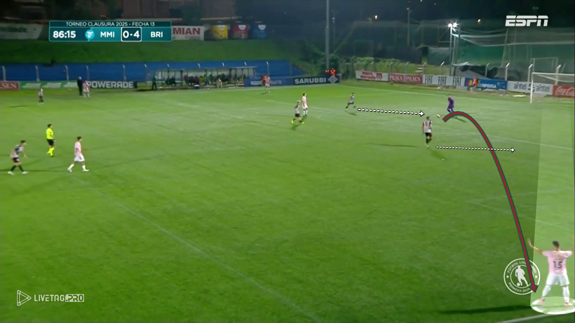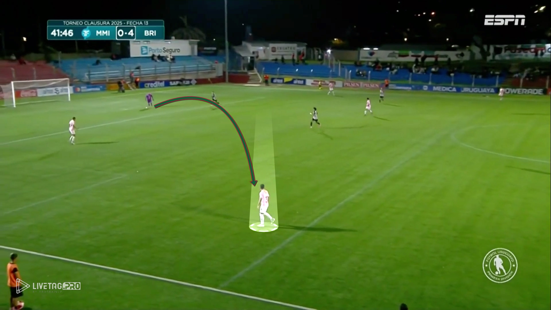 His footwork is not an isolated resource, but a structural trait that conditions how Boston River can initiate, progress, and restart play.