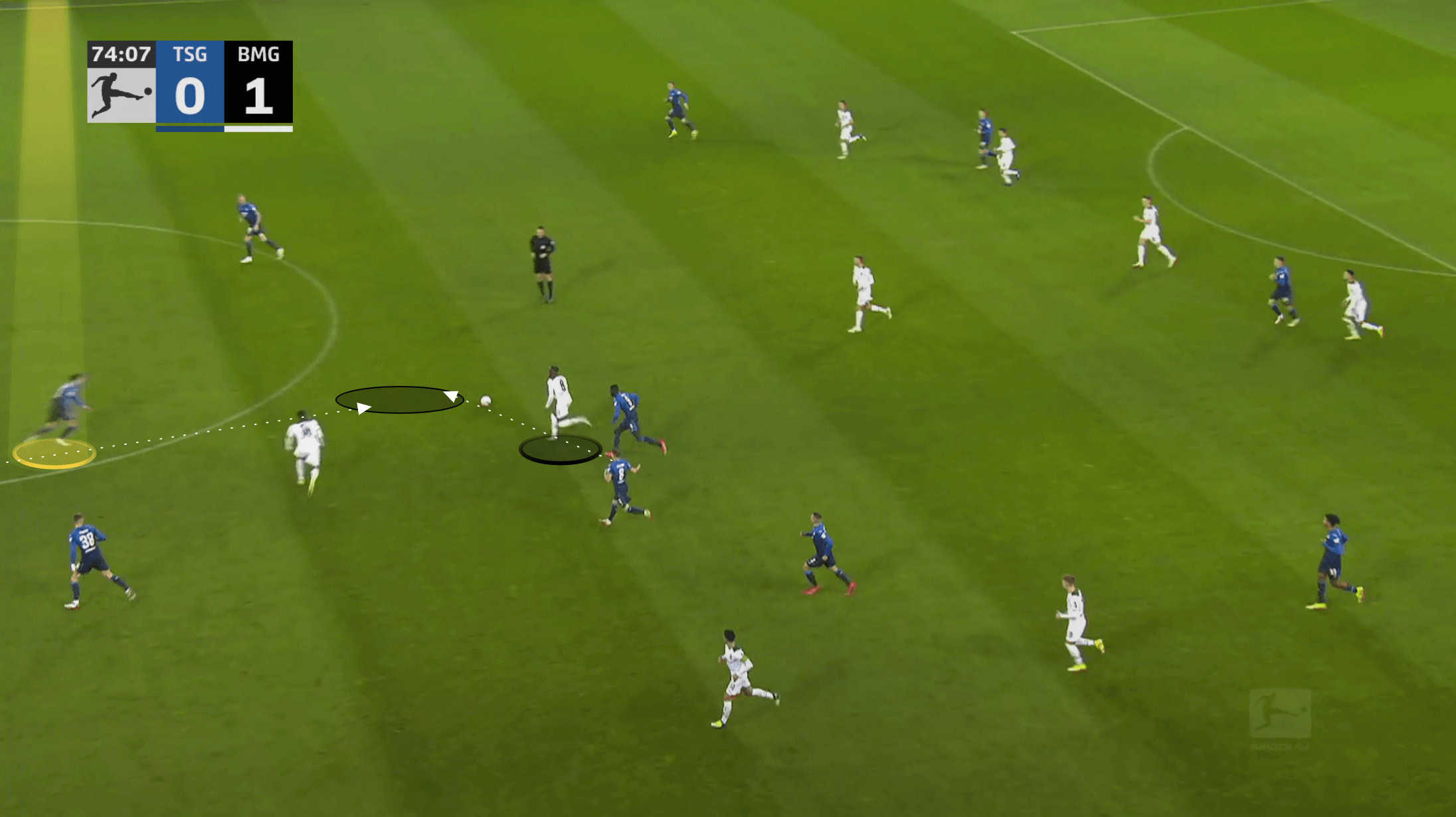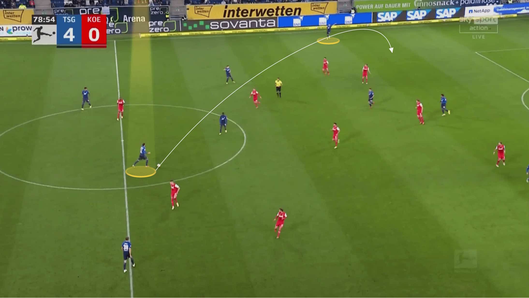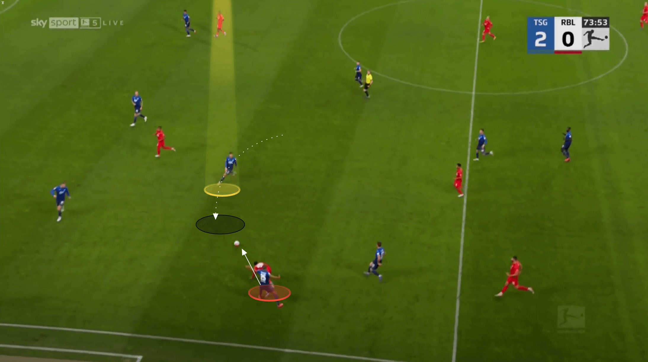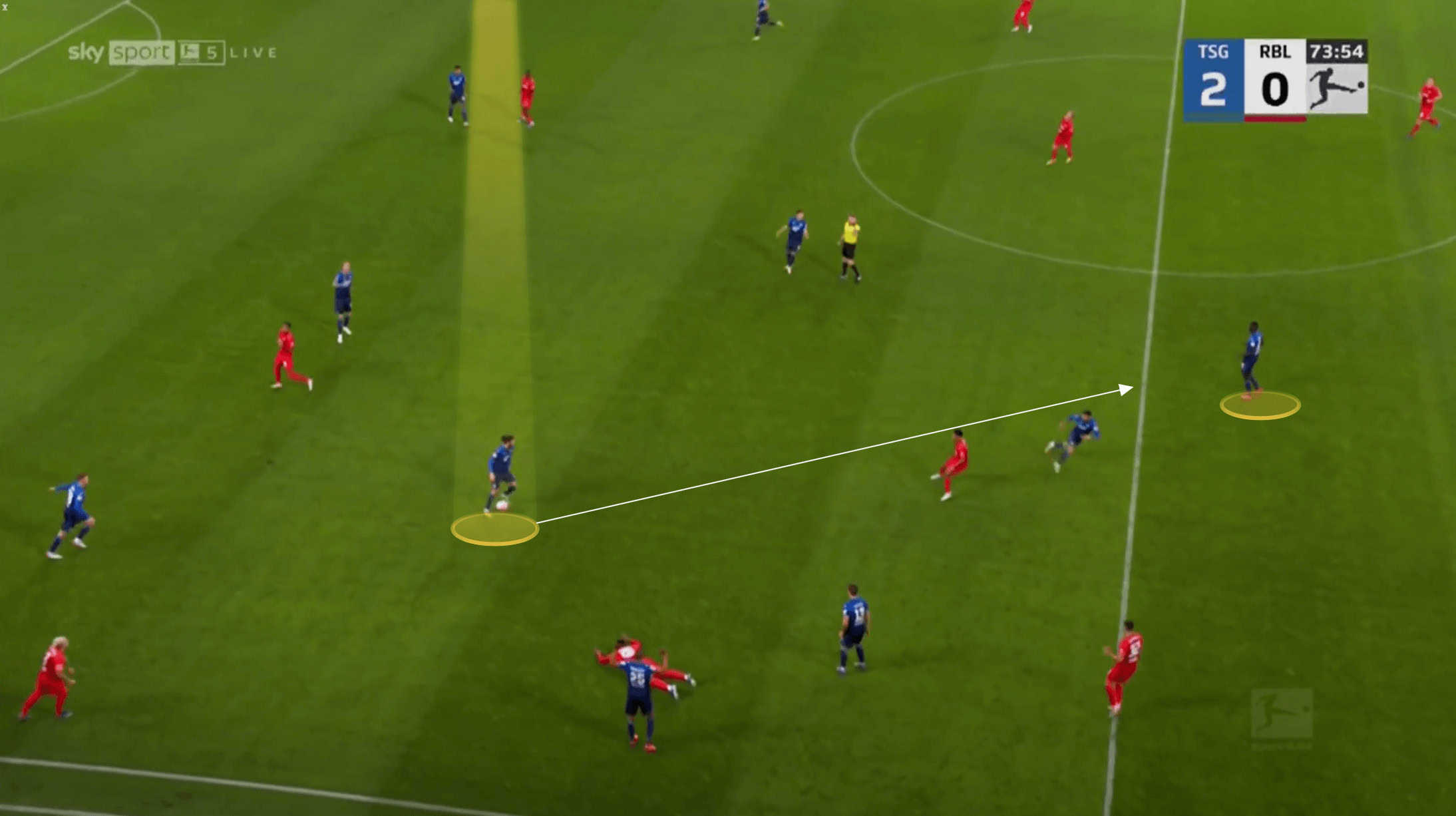The following two images highlight some of the quality Grillitsch possesses with these longer passes. He isn’t just making high percentage lateral switches of play.