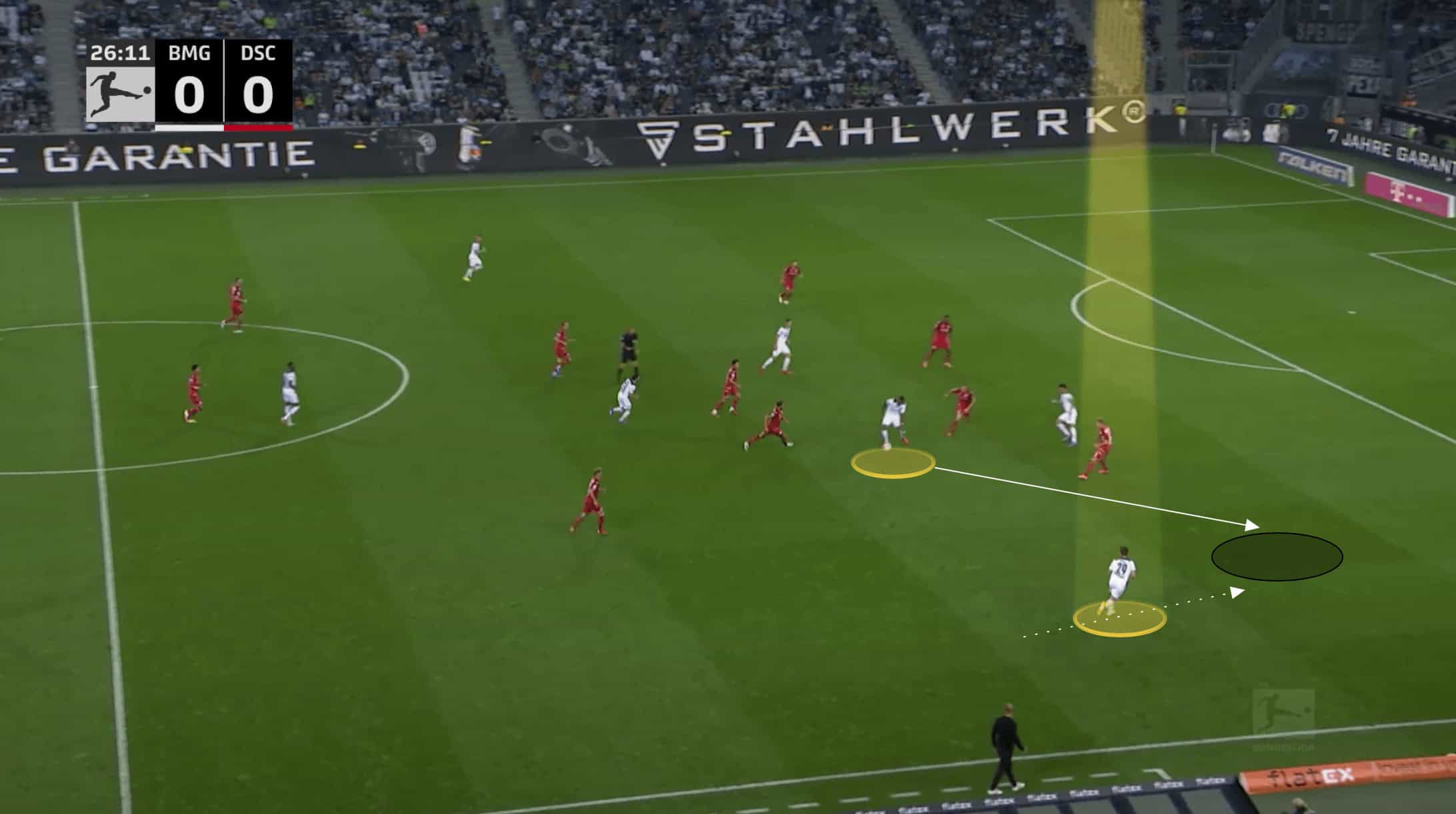 This tactical analysis and scout report will provide an analysis of Scally’s attributes and performances and how he fits into Mönchengladbach’s tactics.
