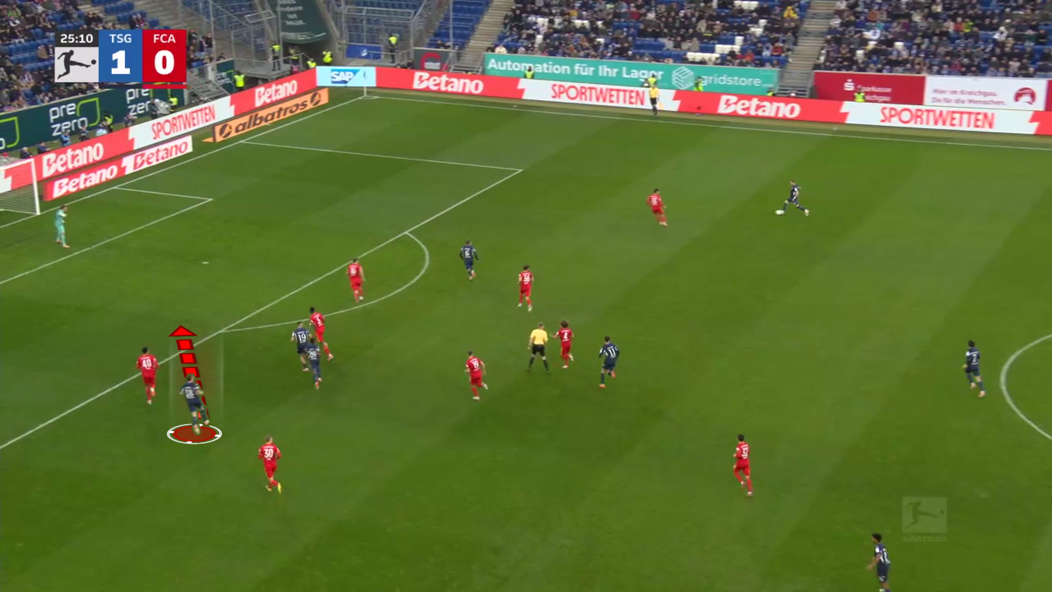 Here, Hoffenheim plays through their left-winger, and Burger is already in a very advanced position.