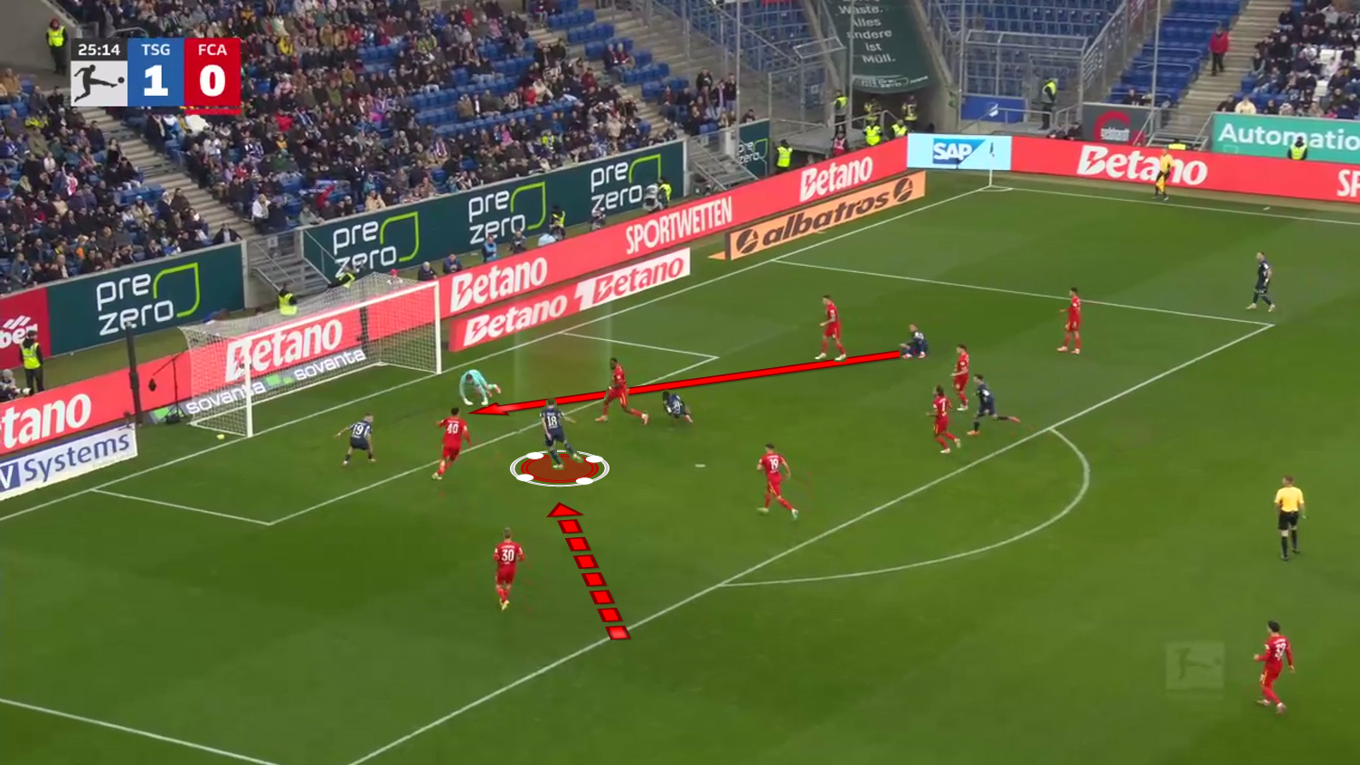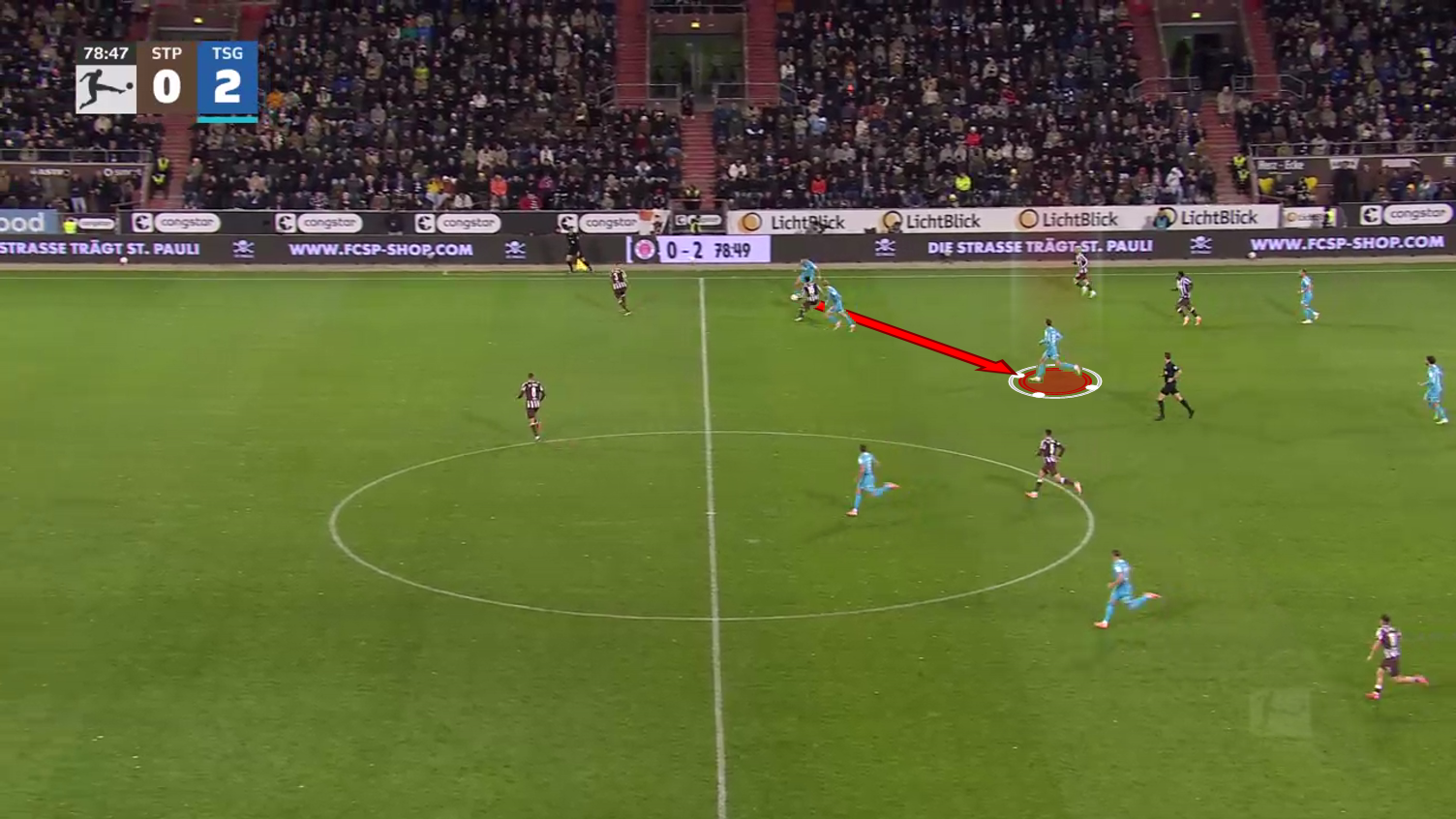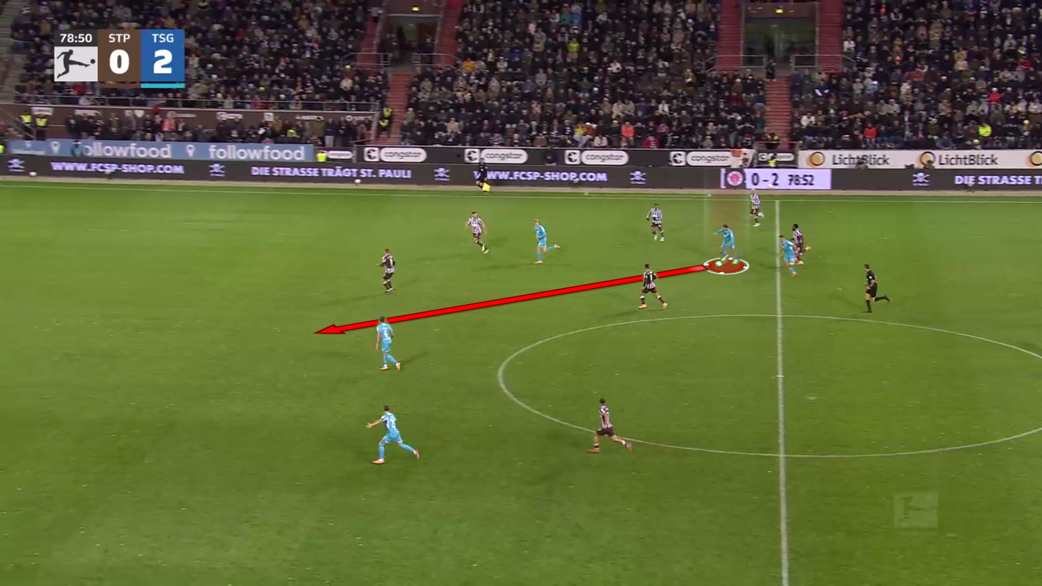 From then on, Burger just threads the pass through the remaining pieces of the backline and assists on the third Hoffenheim goal of the game.
