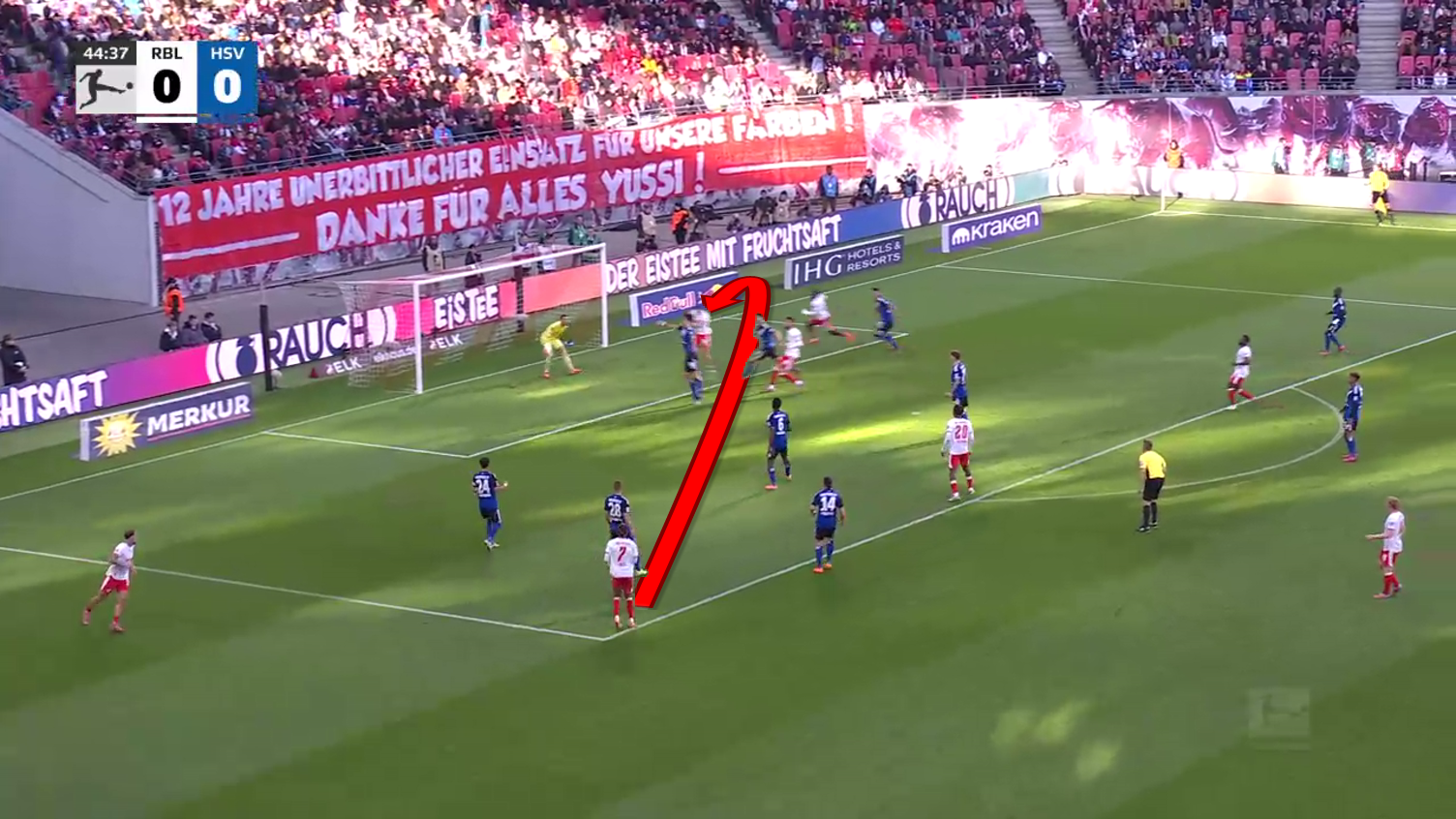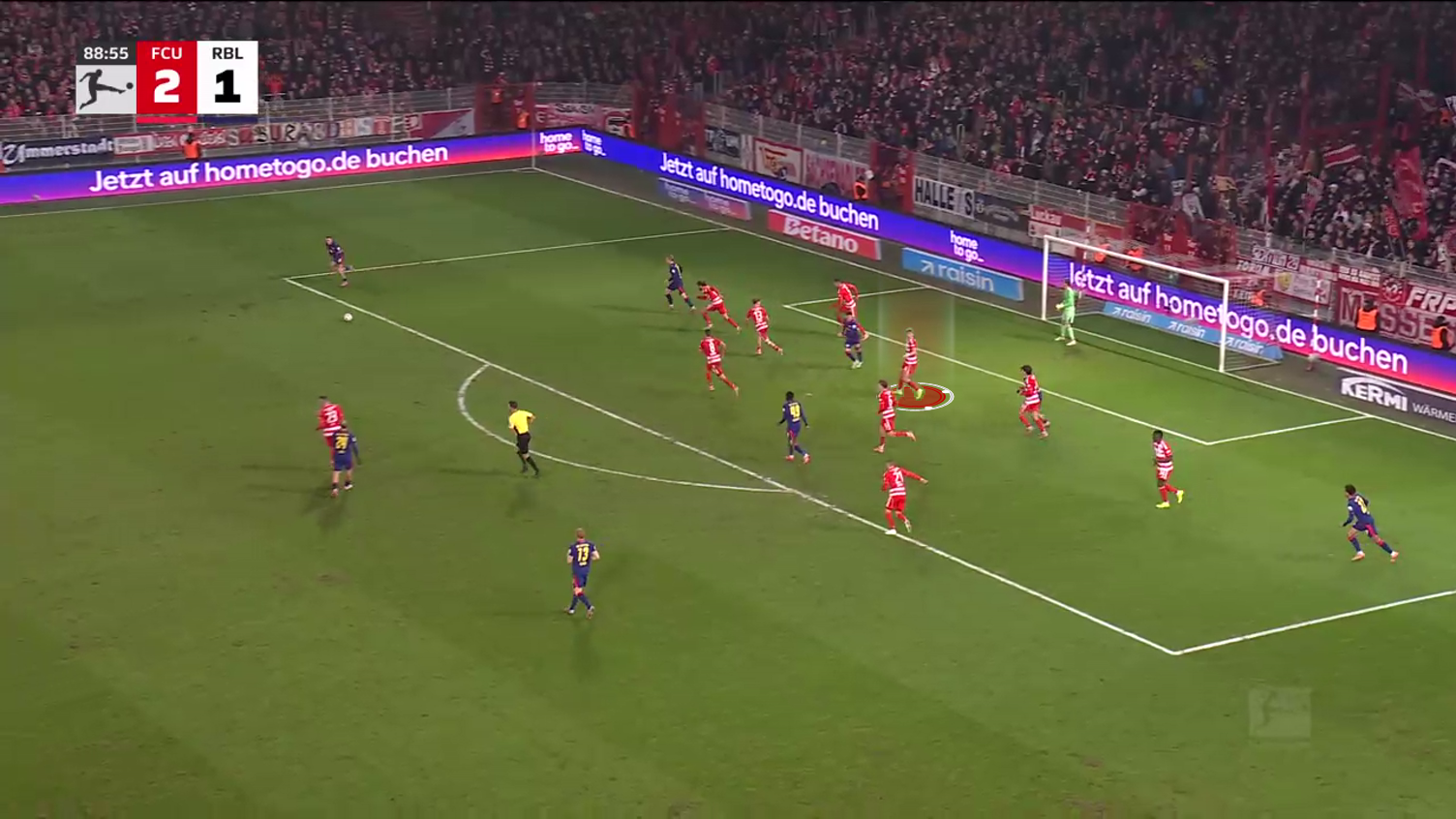 His teammate was losing the fight in the box, and it would have been a huge opportunity for Leipzig, but Querfeld heads the ball and clears it away.