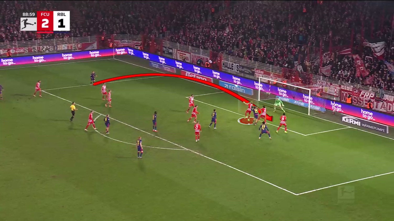 In the picture above, Union are expecting a cross after RB Leipzig won a second ball after a set-piece.