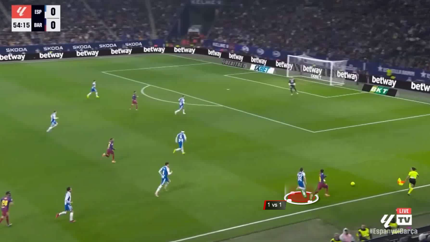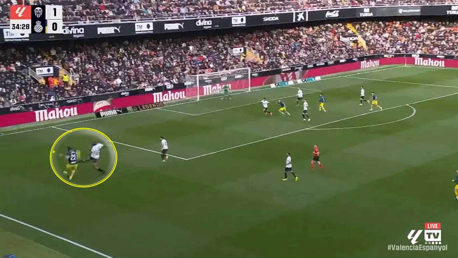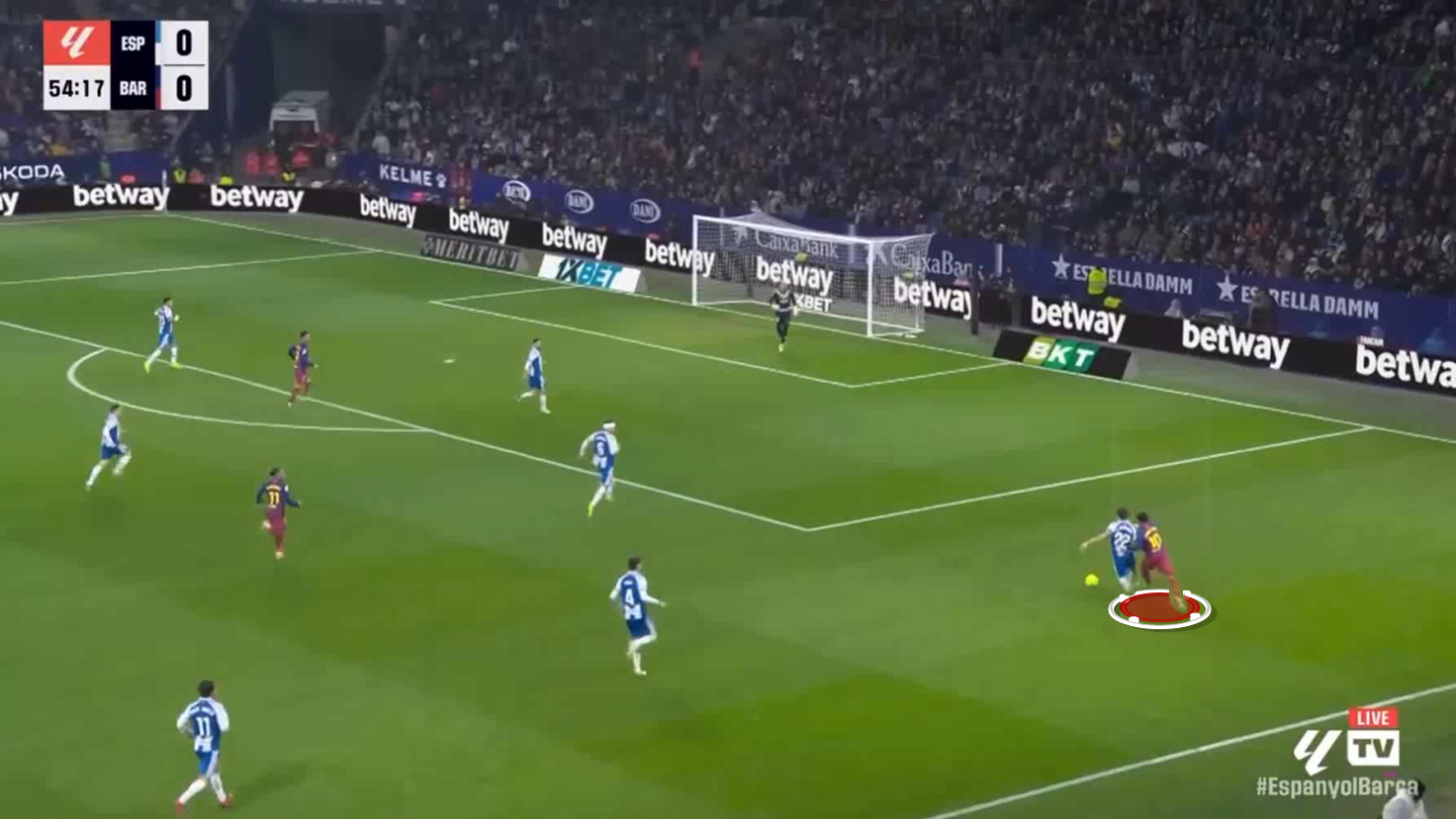 Here we see Carlos Romero’s ability to keep pace with Lamine Yamal in one of the toughest 1v1 situations you can face, a moment that reflects his defensive versatility more than just a successful tackle.