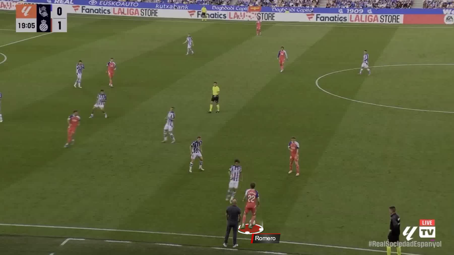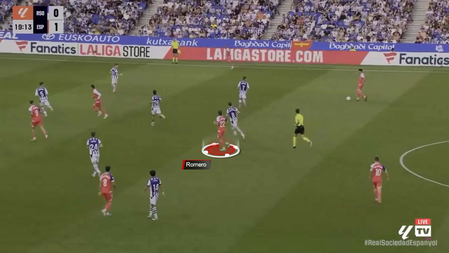 Here against Real Sociedad, Romero opted to move centrally early, leaving the left flank open.