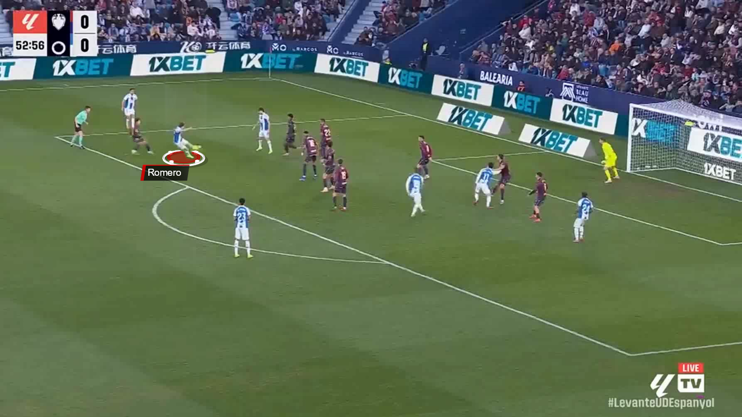 Romero didn’t enter the penalty area directly; instead, he positioned himself near the far post, taking advantage of the defence’s focus on the attackers.