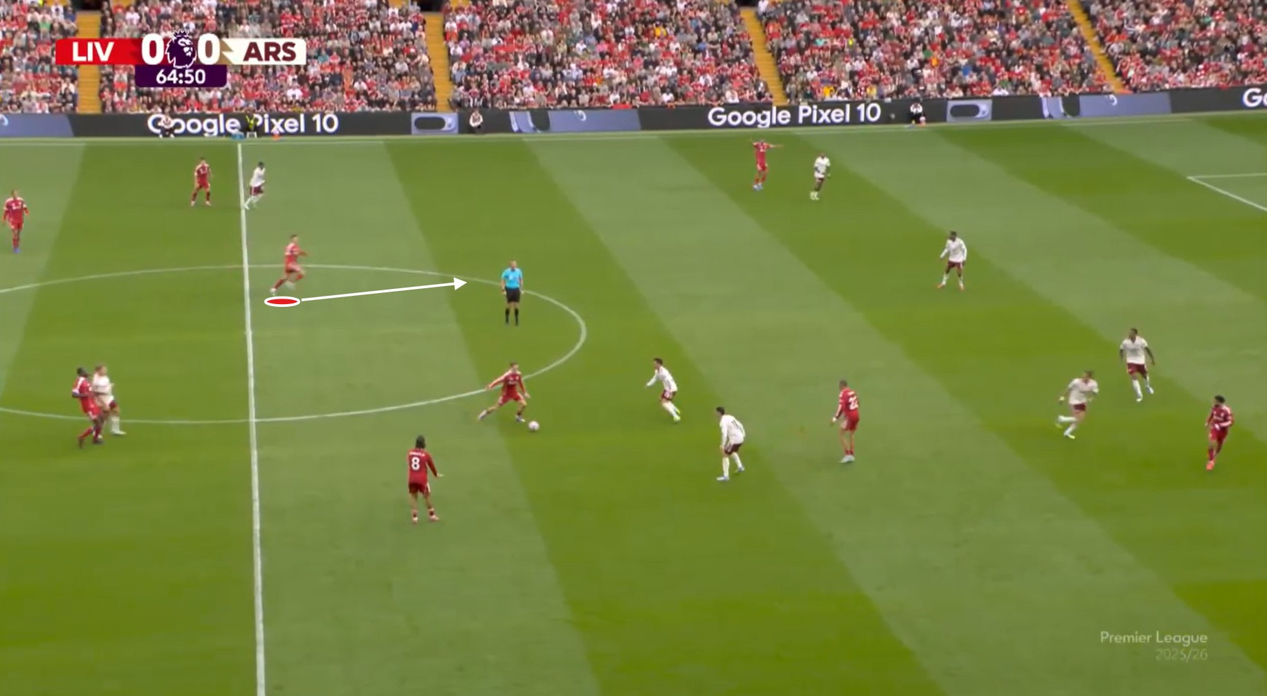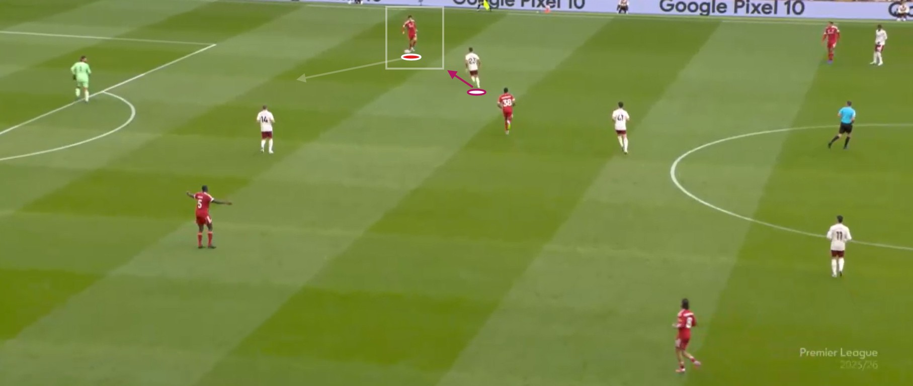 Curtis Jones rarely forces the vertical option; instead, he recycles and resets the play to maintain rhythm rather than chaos.