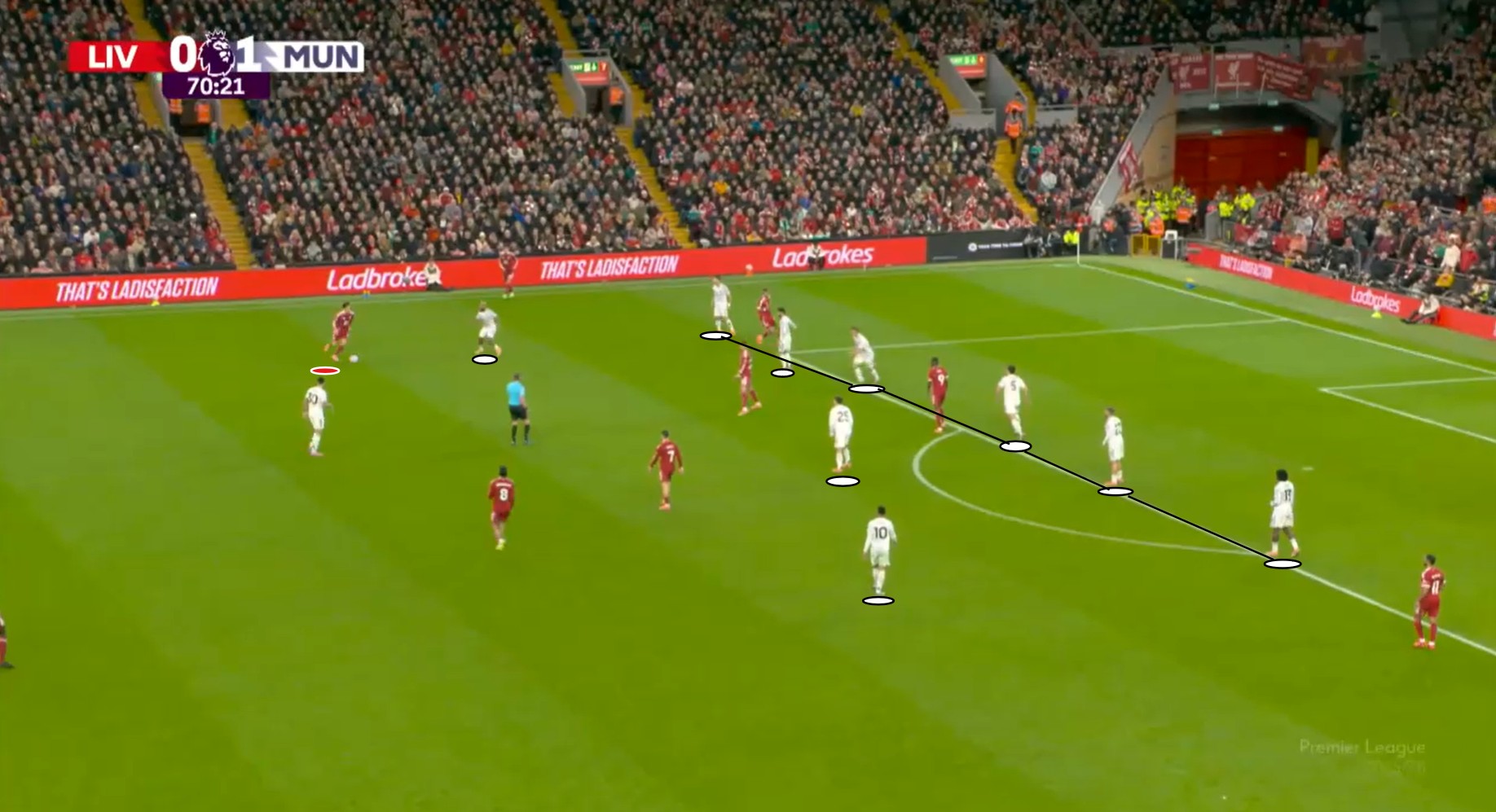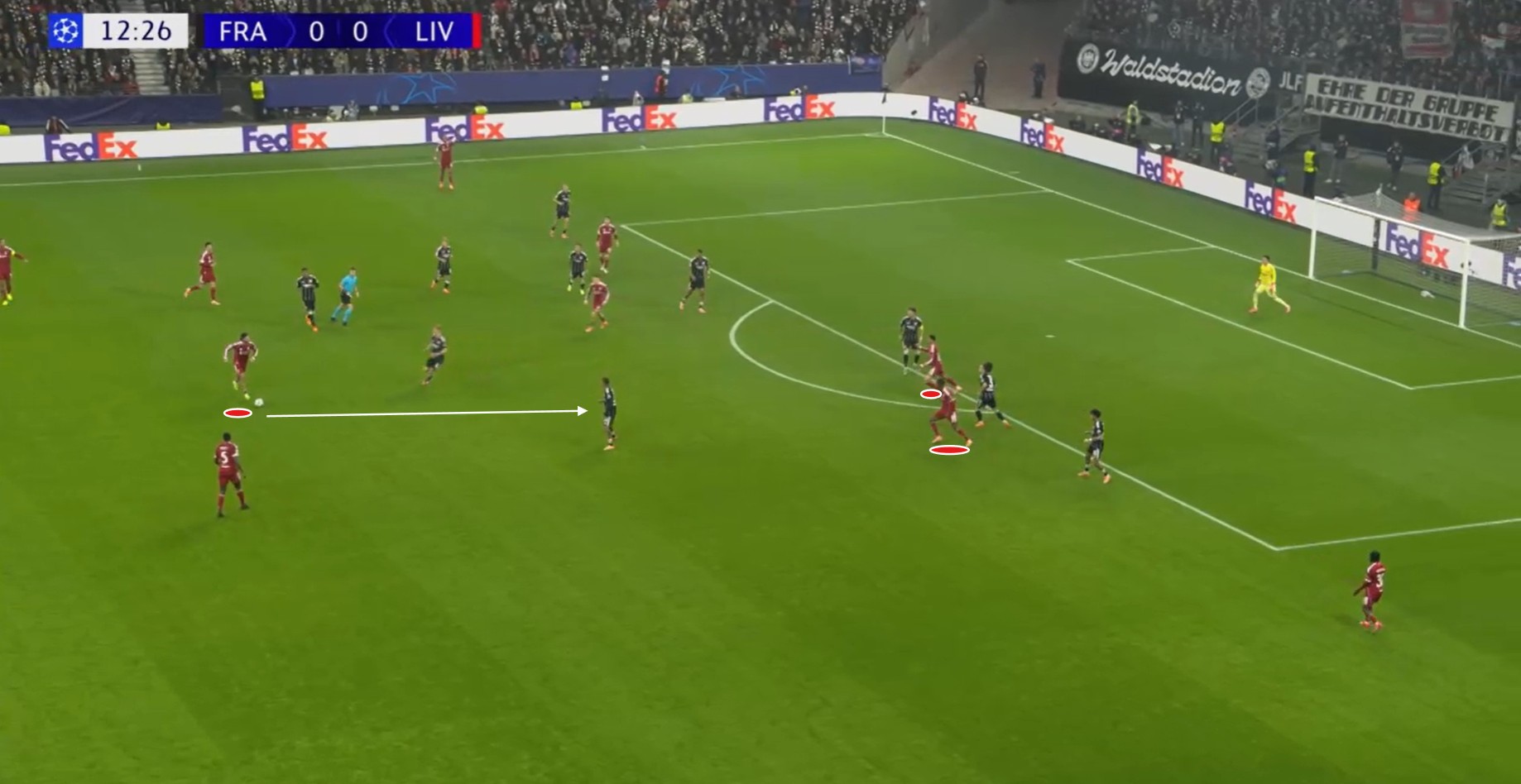 Curtis Jones analyses where the space is and pulls the opposition pressing structure all over the place due to the positions he picks up.