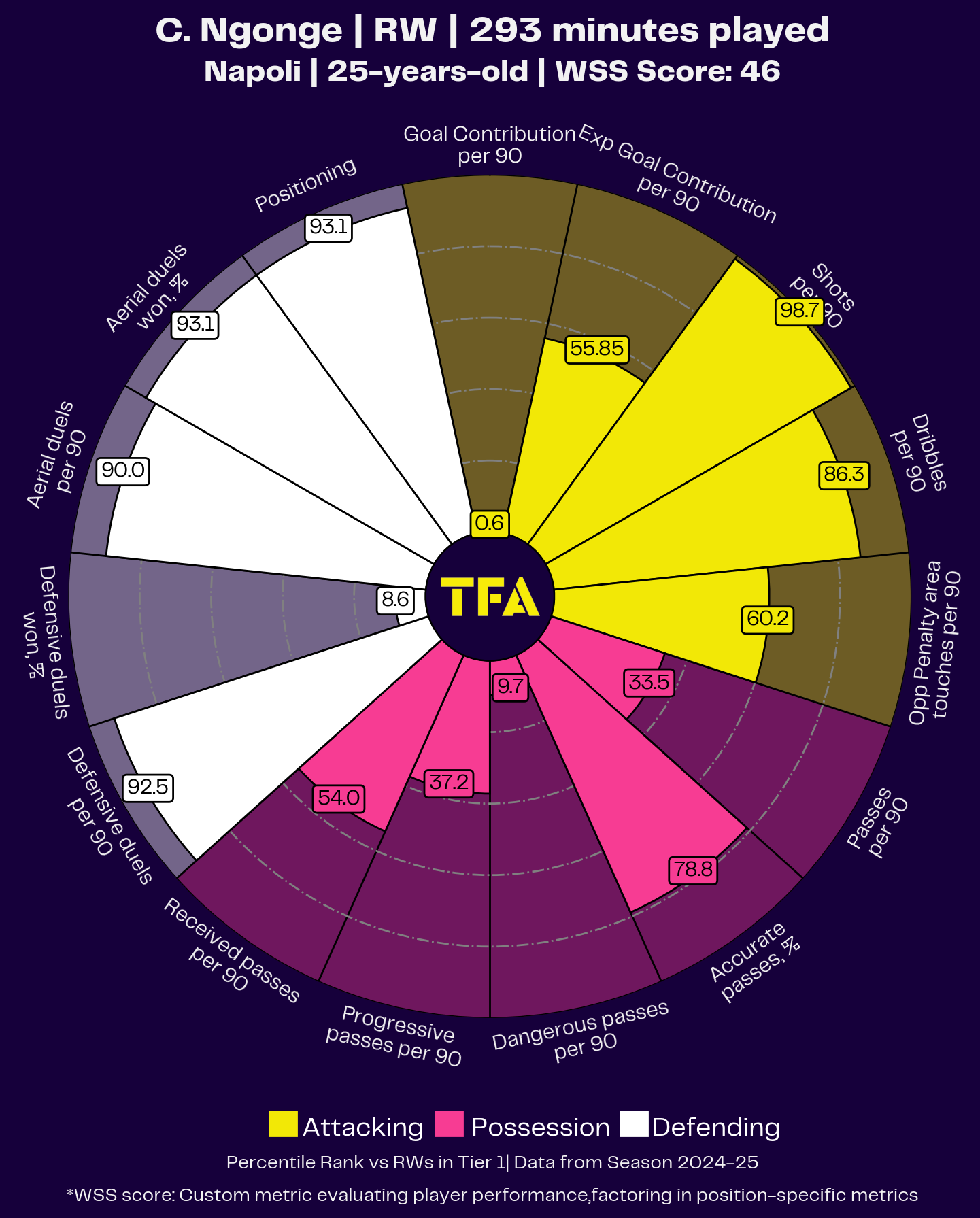 Ngonge will likely make Napoli regret loaning him out, as Antonio Conte will certainly be short of suitable options for the right winger position should Matteo Politano get injured or suspended during the numerous upcoming games on two fronts and later on three fronts: Serie A, UEFA Champions League, and Coppa Italia.