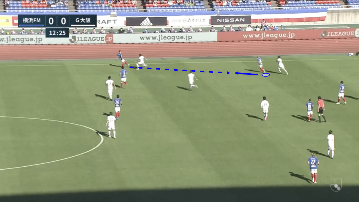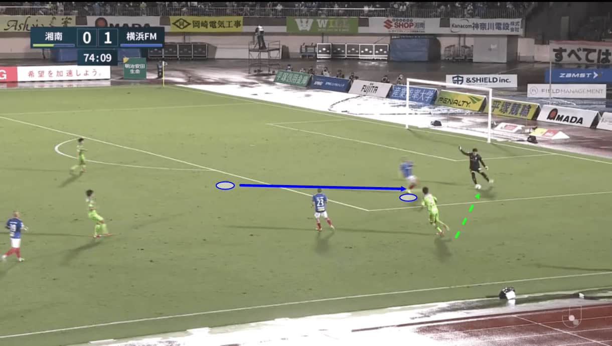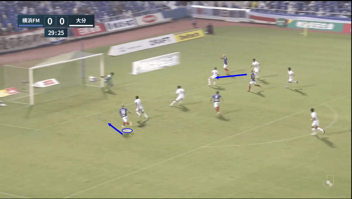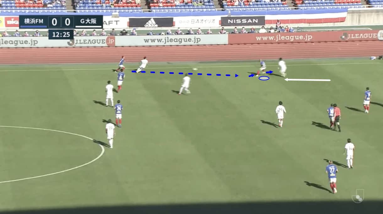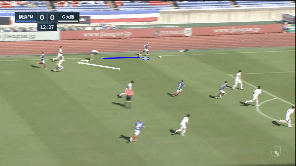 Meanwhile, the defender behind the Marinos man was unable to keep up with the attacker once he opted to burst into action and run into this space.