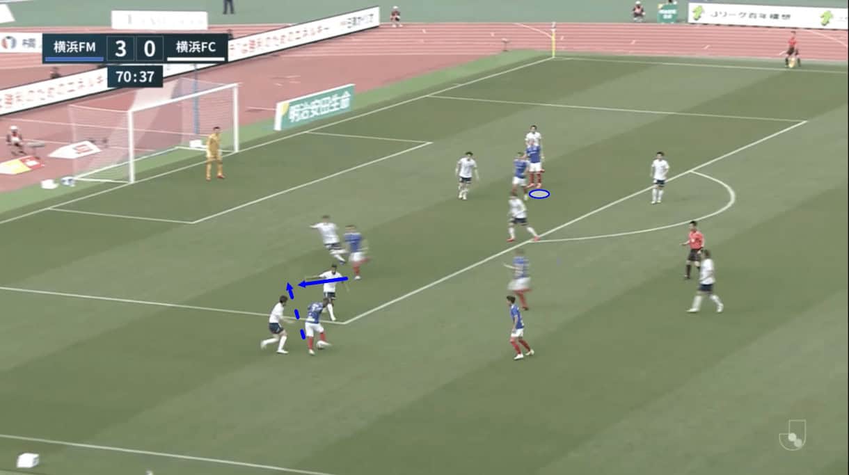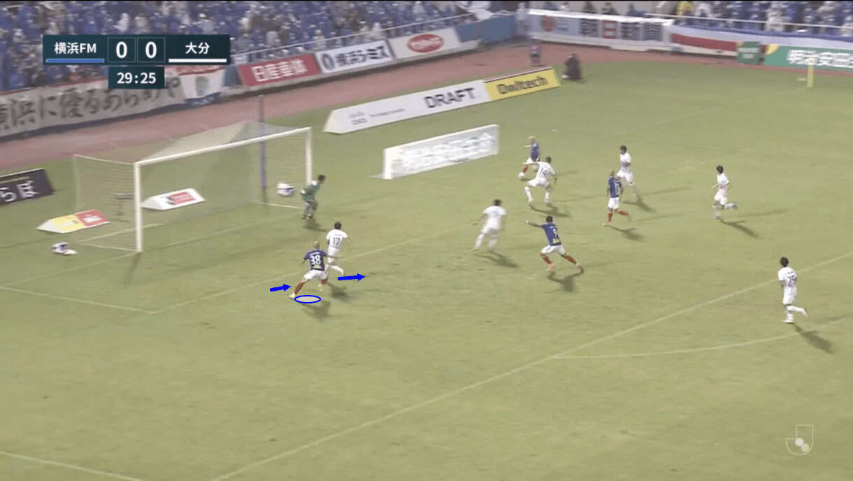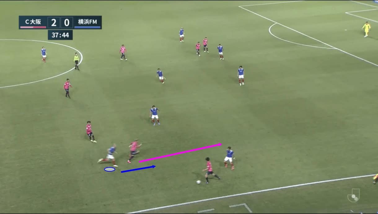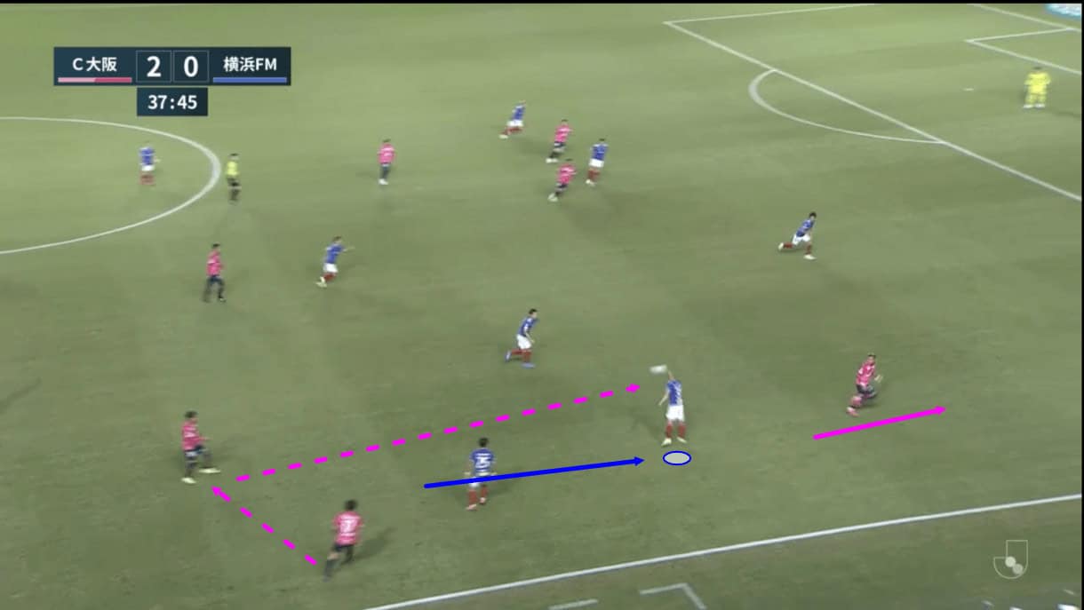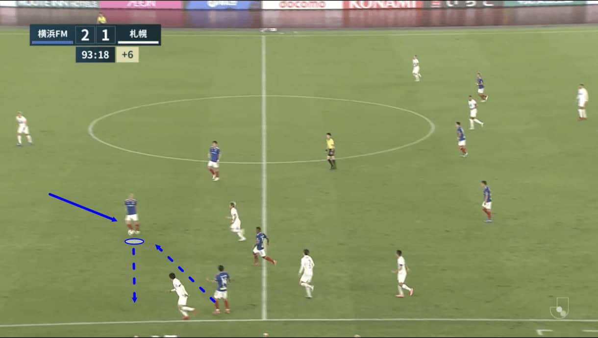 Meanwhile, the defender behind the Marinos man was unable to keep up with the attacker once he opted to burst into action and run into this space.