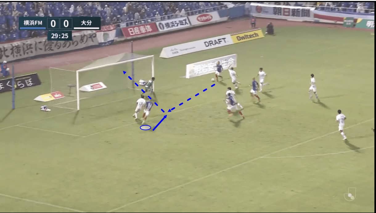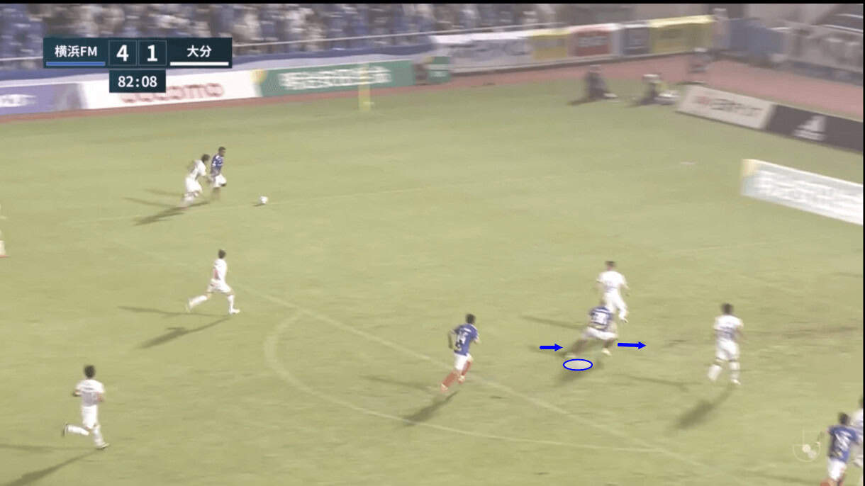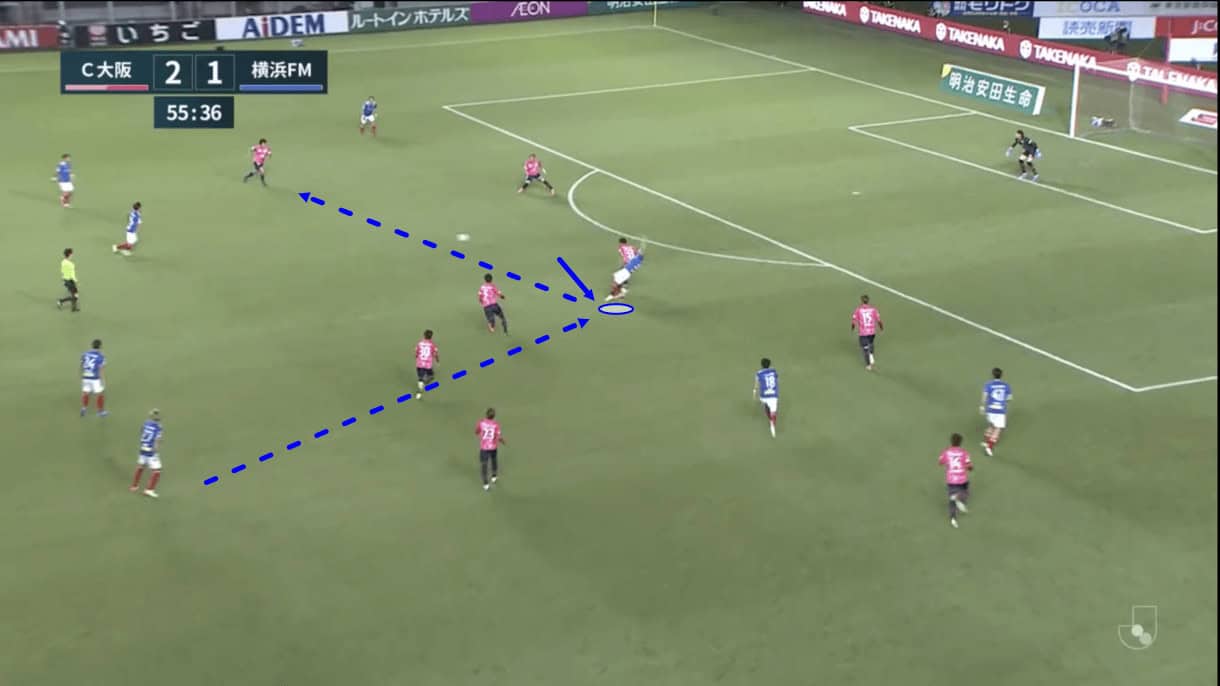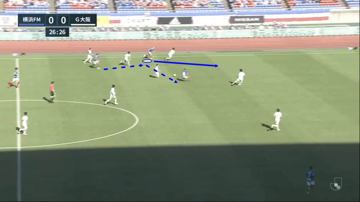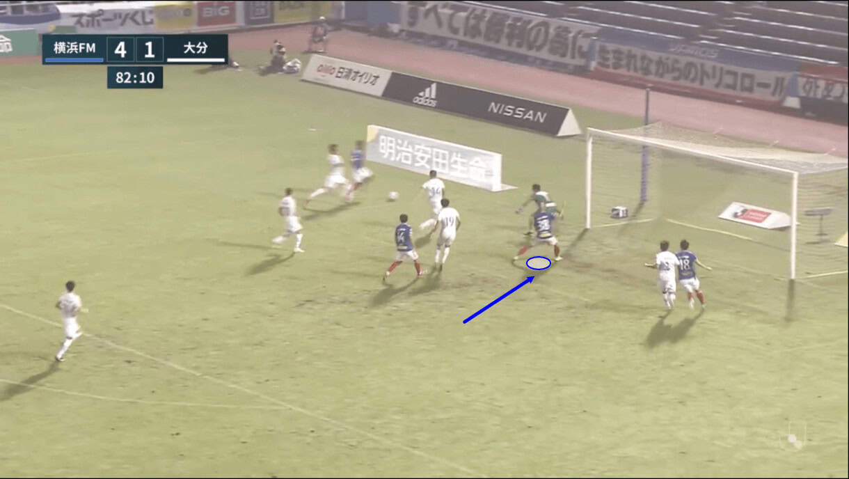 Meanwhile, the defender behind the Marinos man was unable to keep up with the attacker once he opted to burst into action and run into this space.