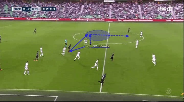 In the early stages of the season, Crowley has shown good form in trying to be as pro-active on the ball as possible. This can be seen as he’s amassed 213 touches, 124 passes, 10 dribbles and 4 key passes.