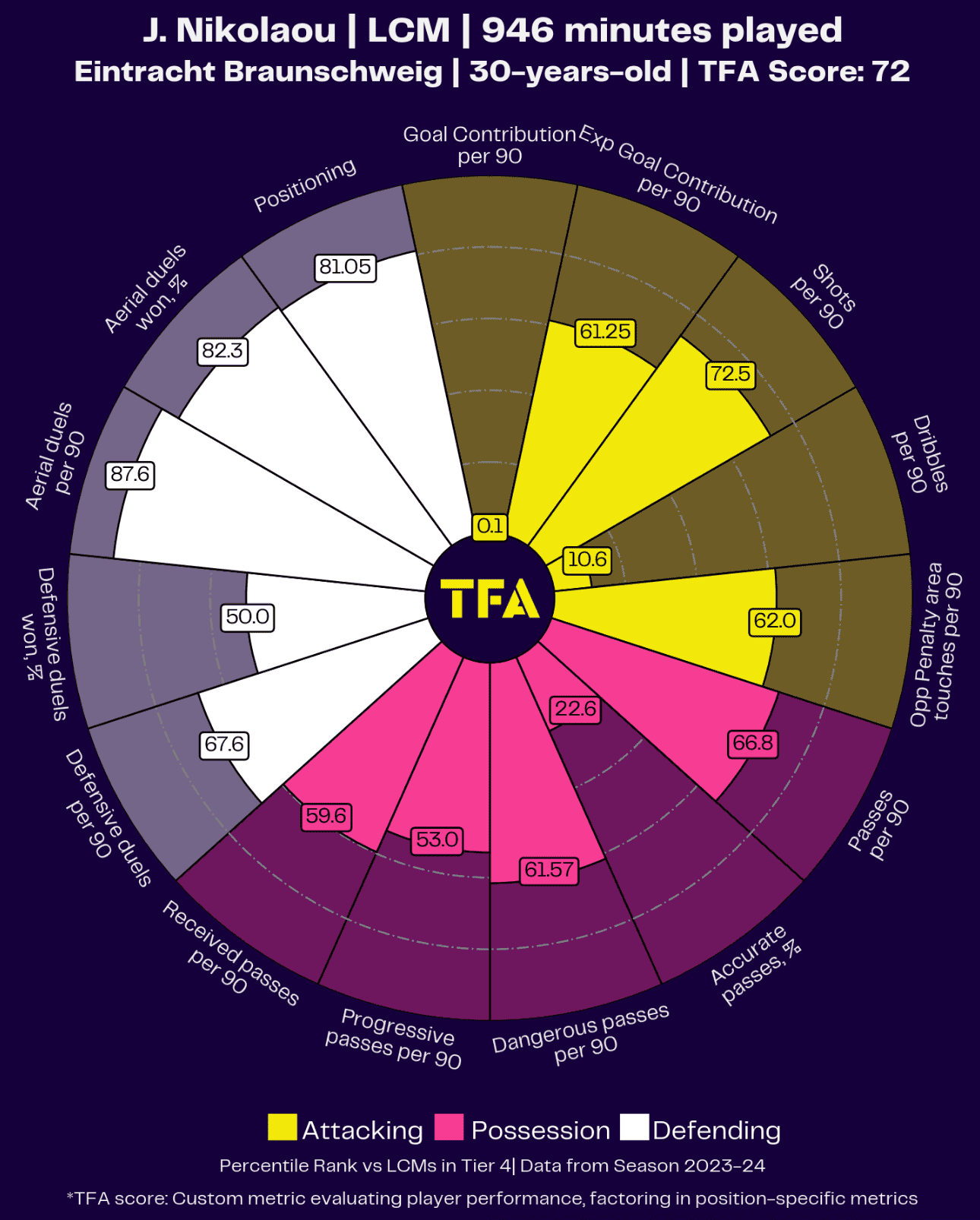As with Zimmerman, there is some value for sides in a player with Nikolaou’s profile, although the midfielder is under contract until the end of the 2024/25 season. As a defensive-minded midfielder who can contribute effectively to the attacking phase with vertical passing and as a leader and captain, he would be an interesting addition for a lot of teams domestically in Germany.
