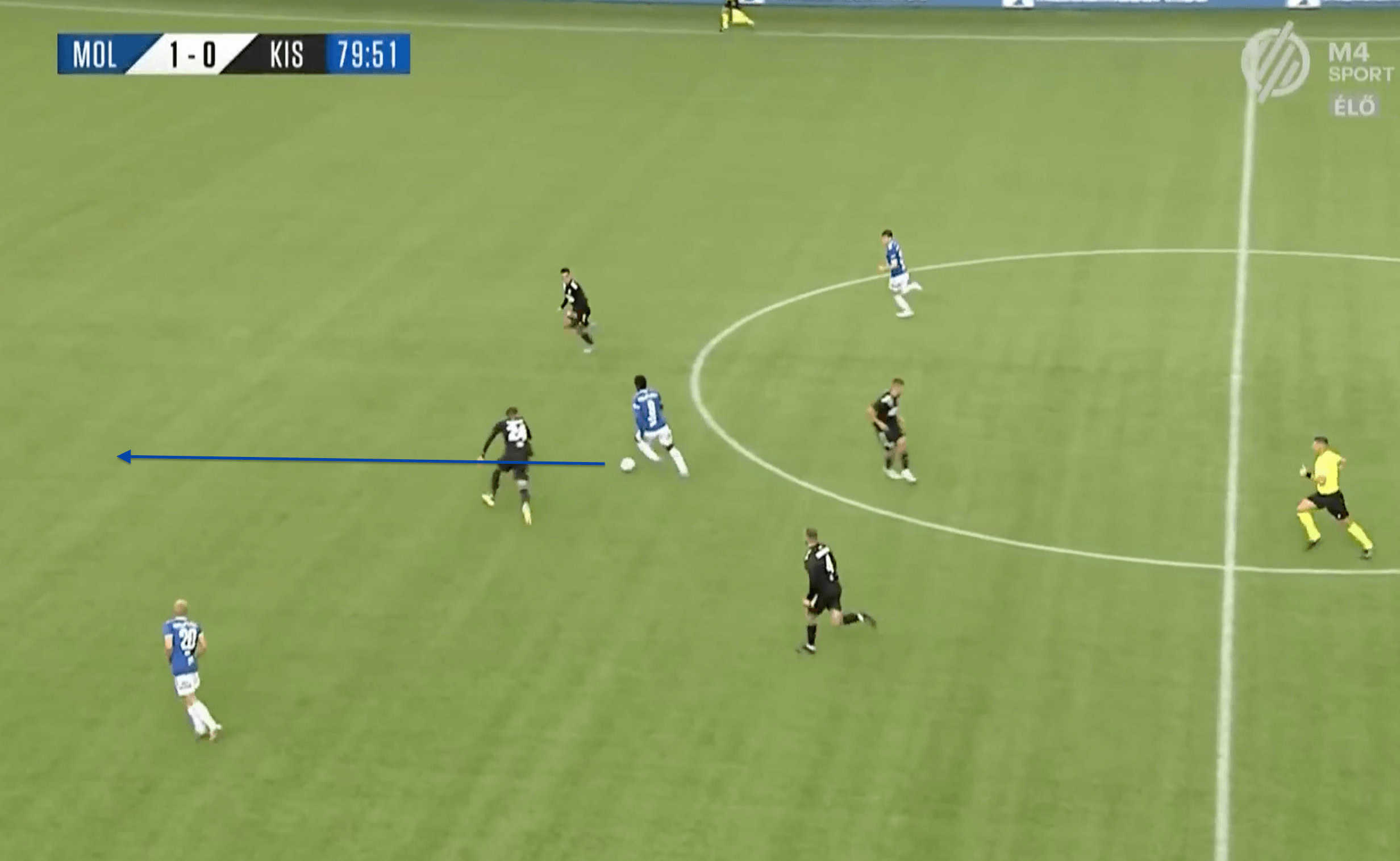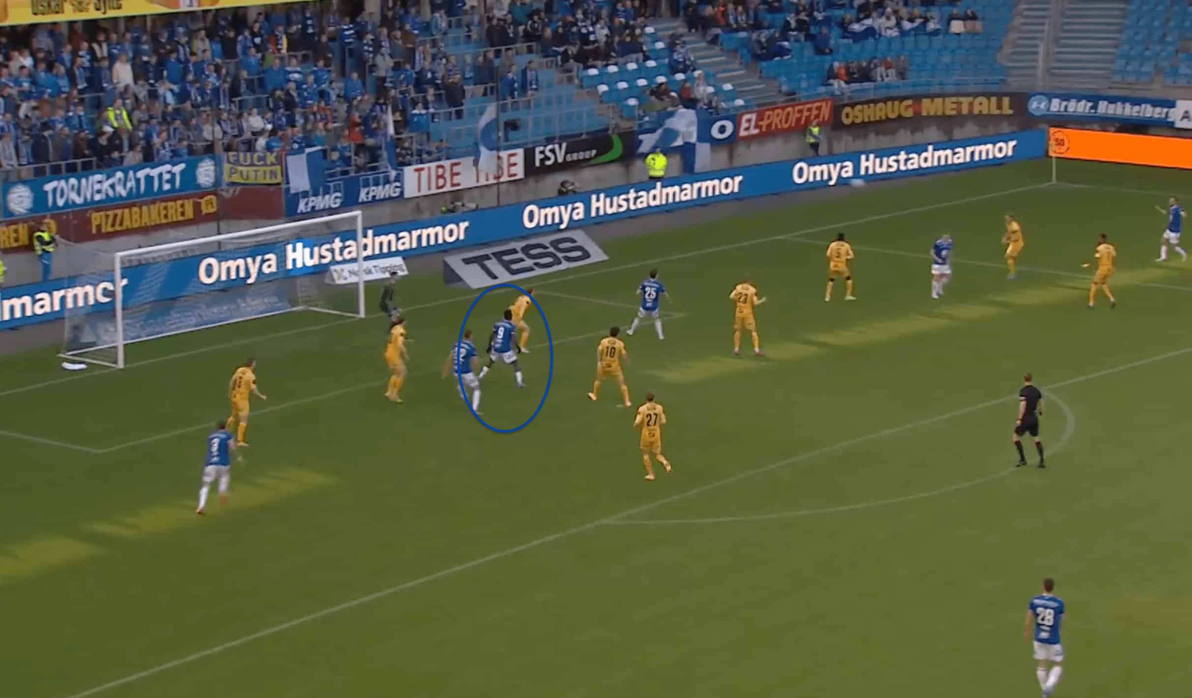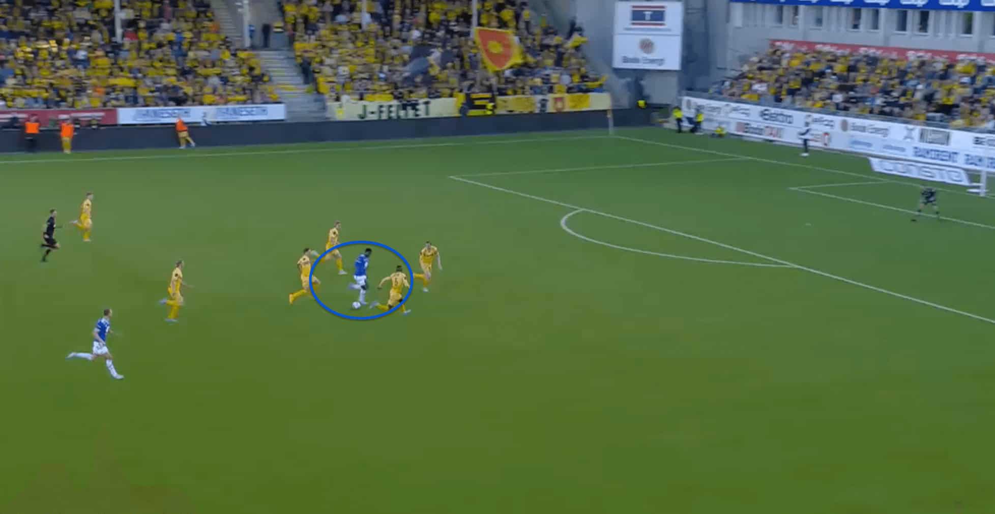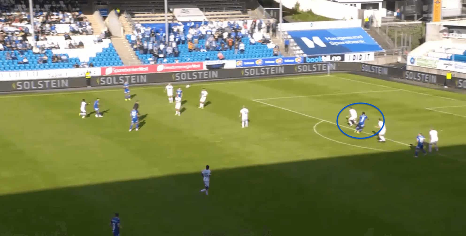 We can see an example of this in the image above, where Fofana manages to stay back and create separation from the opposing defenders, who are all drawn by the other Molde players to the ball, which helps create separation for Fofana from the defenders.