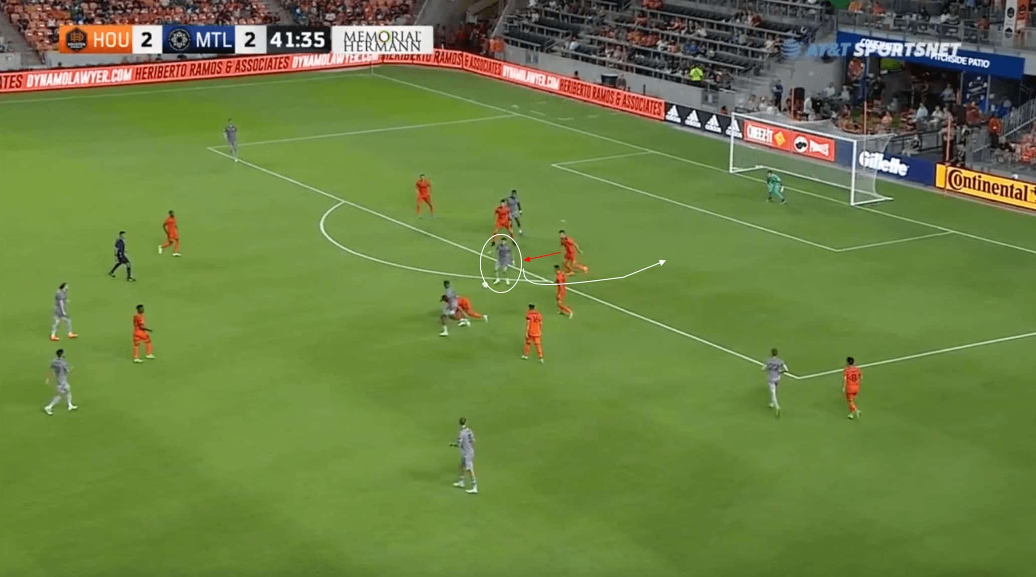 In the phase of play above against FC Cincinnati, the young midfielder has driven into the attacking third of the pitch while in possession.