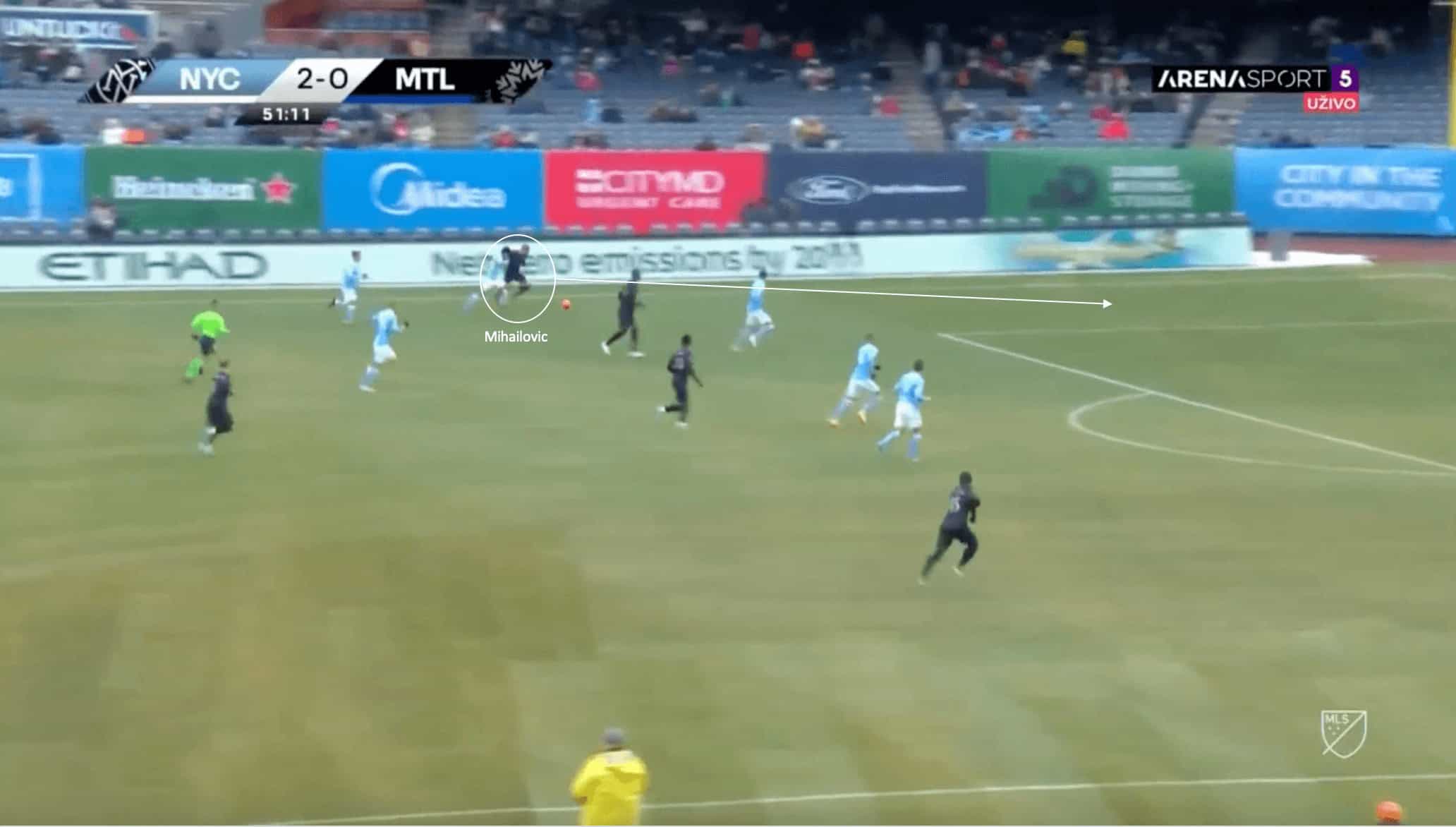 During his final season with CF Montréal, Mihailovic has attempted 3.23 dribbles per 90 minutes across all competitions, with a success rate of 52.5%, a respectable number.
