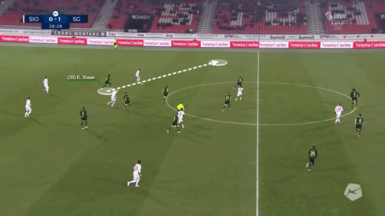 Here we can see an example of Youan’s efforts off the ball for St Gallen.