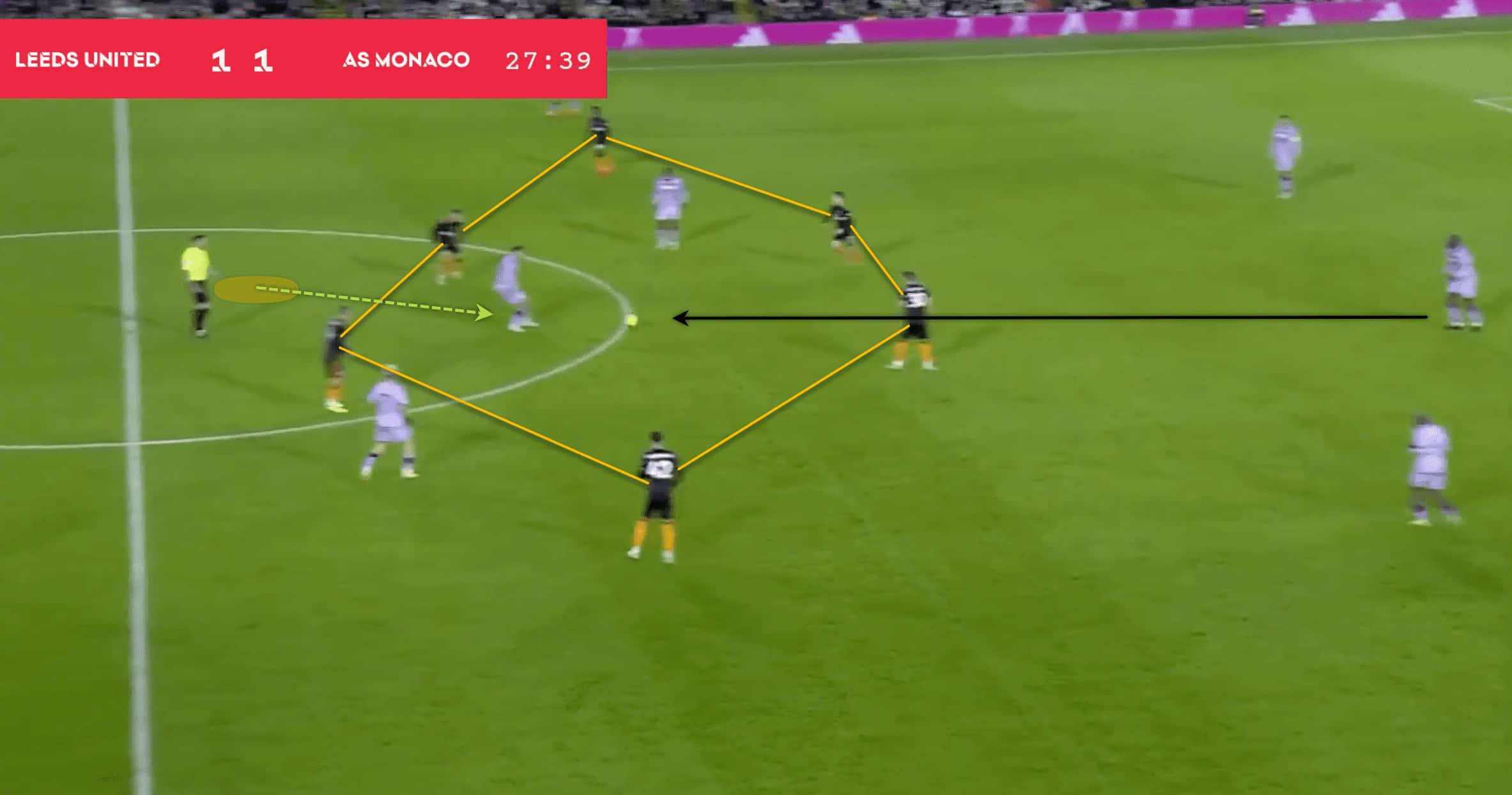 To prevent Leeds from breaking the press and creating chances in another exhibition match, he places a premium on denying the ball from reaching the opposition’s defensive midfielder.