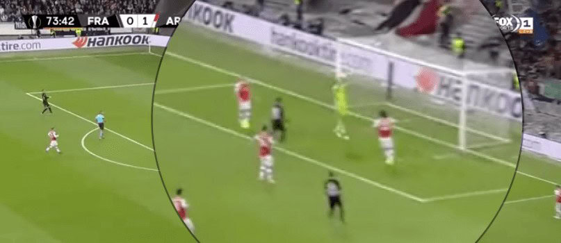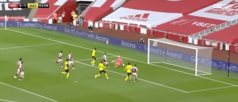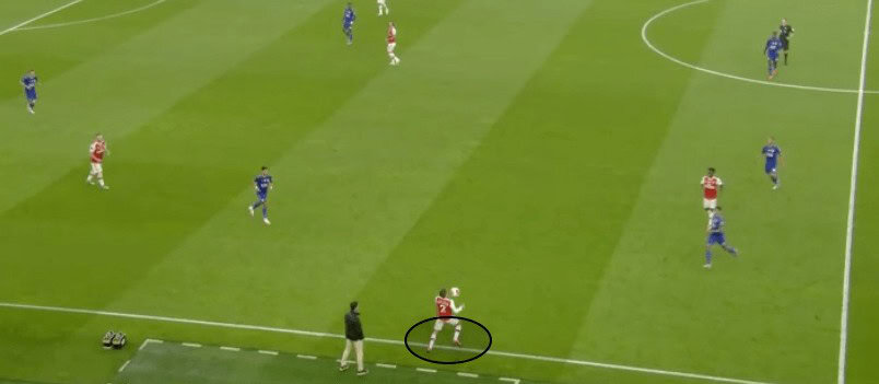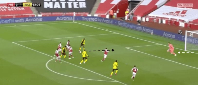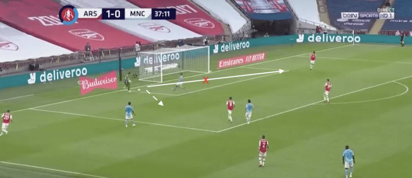 In the first image, we can see that Jesus’ pressure means that there are no short passes available.