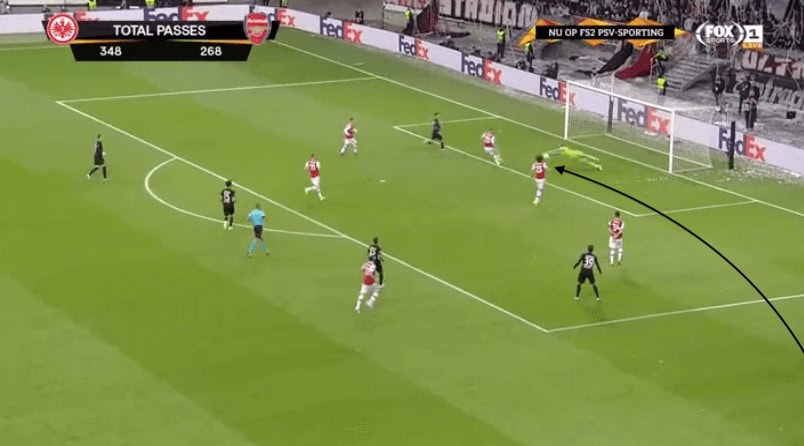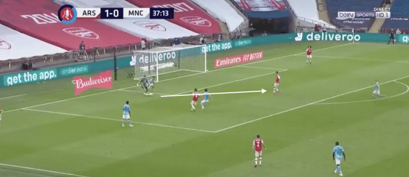 He beats Jesus and finds a pass to Granit Xhaka, who is then able to build from the back.