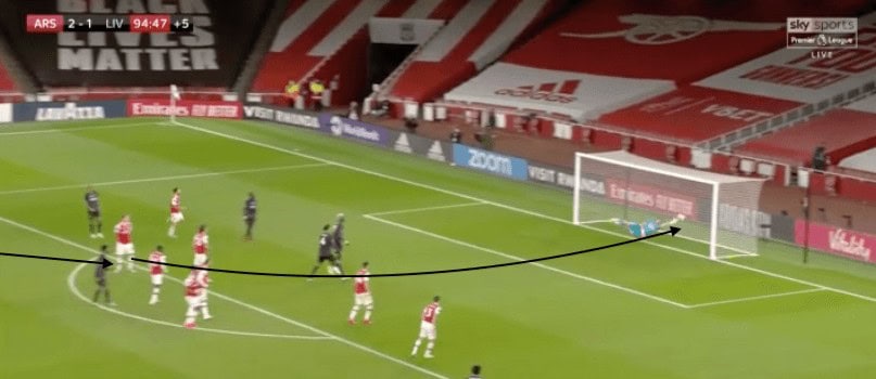 In this example, against Manchester City, he beats Gabriel Jesus and subsequently finds a great pass that wasn’t available in the first instance.