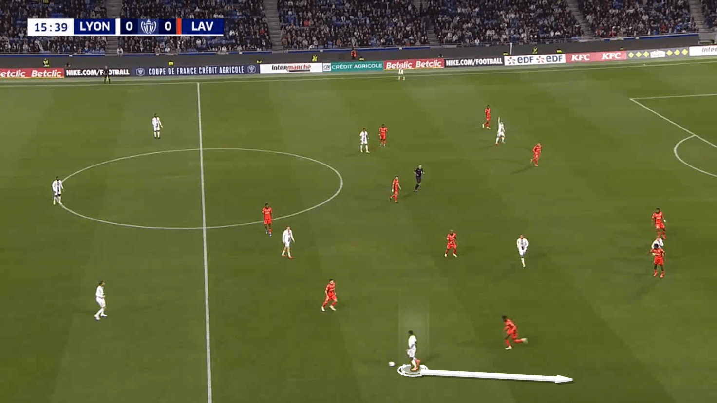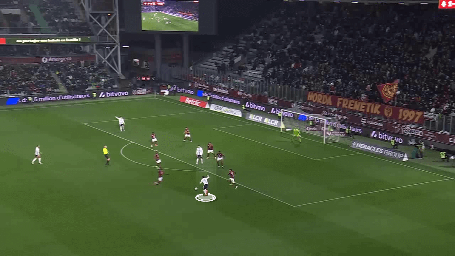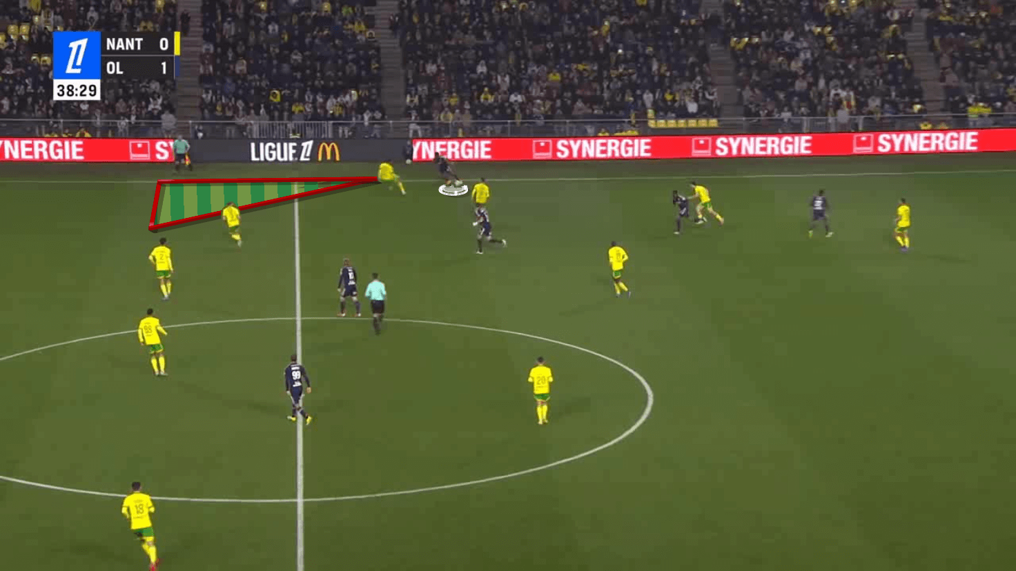 This scenario creates more space for Lyon midfielders to progress forward, which we will take a look at later.
