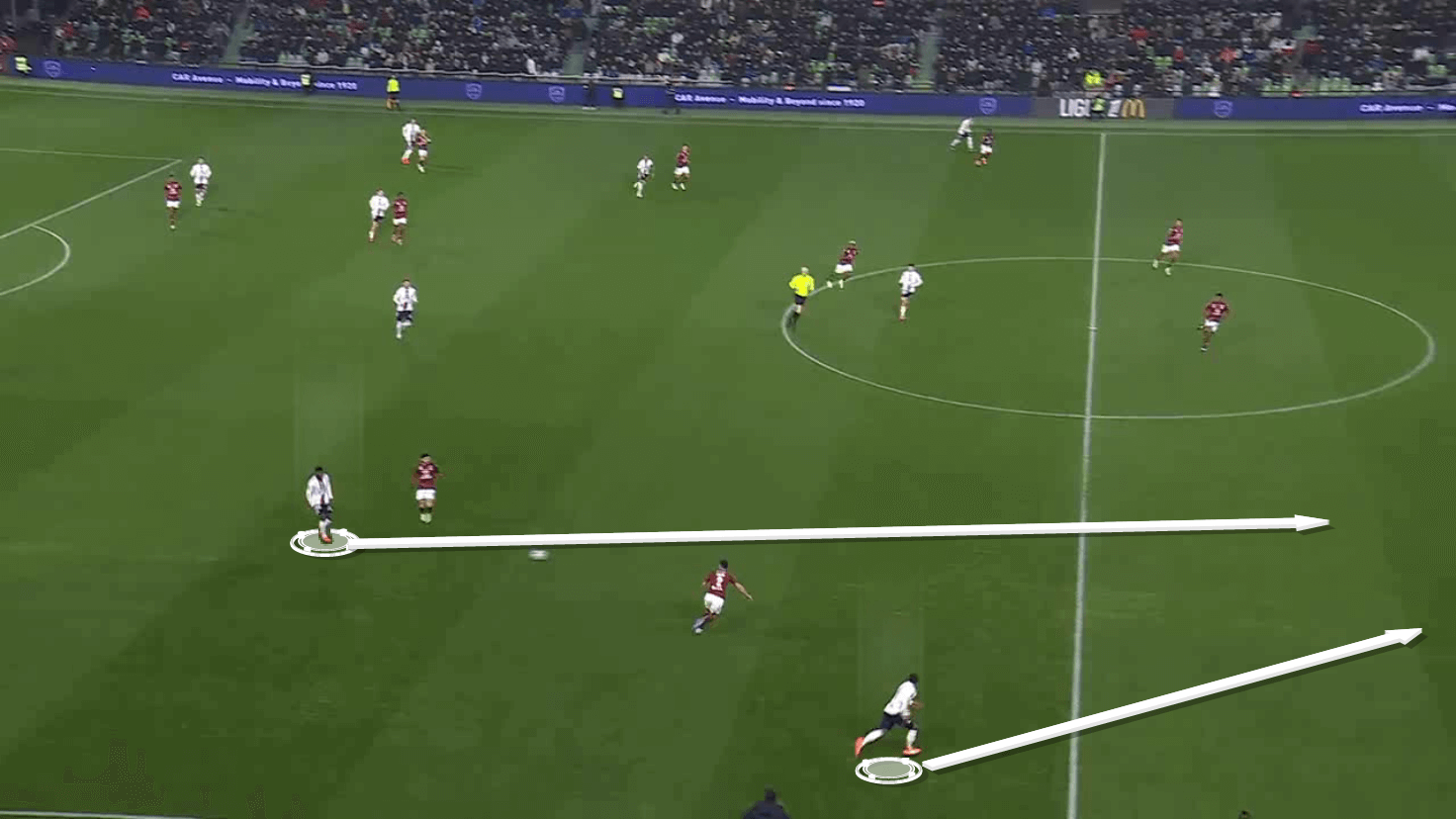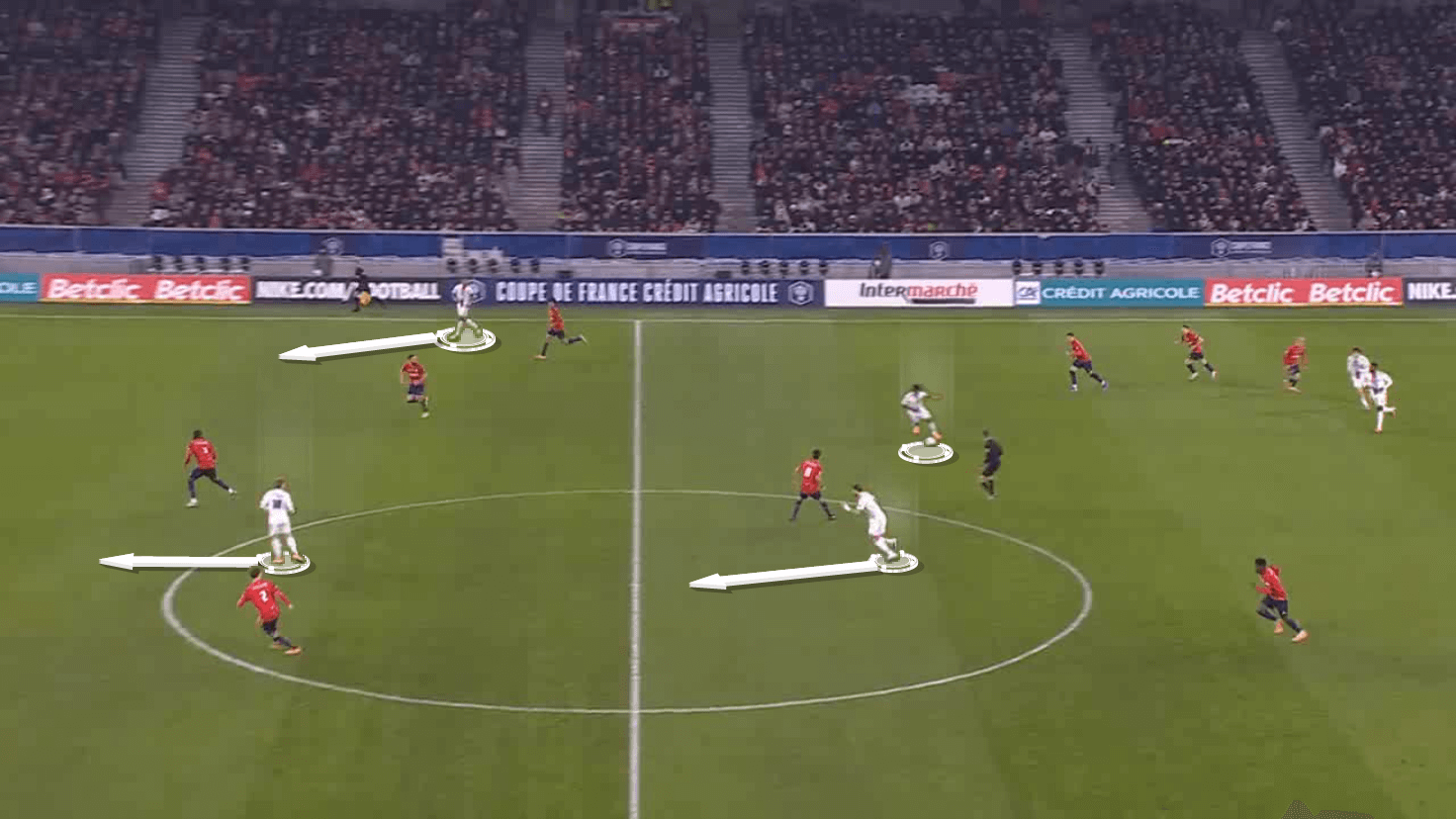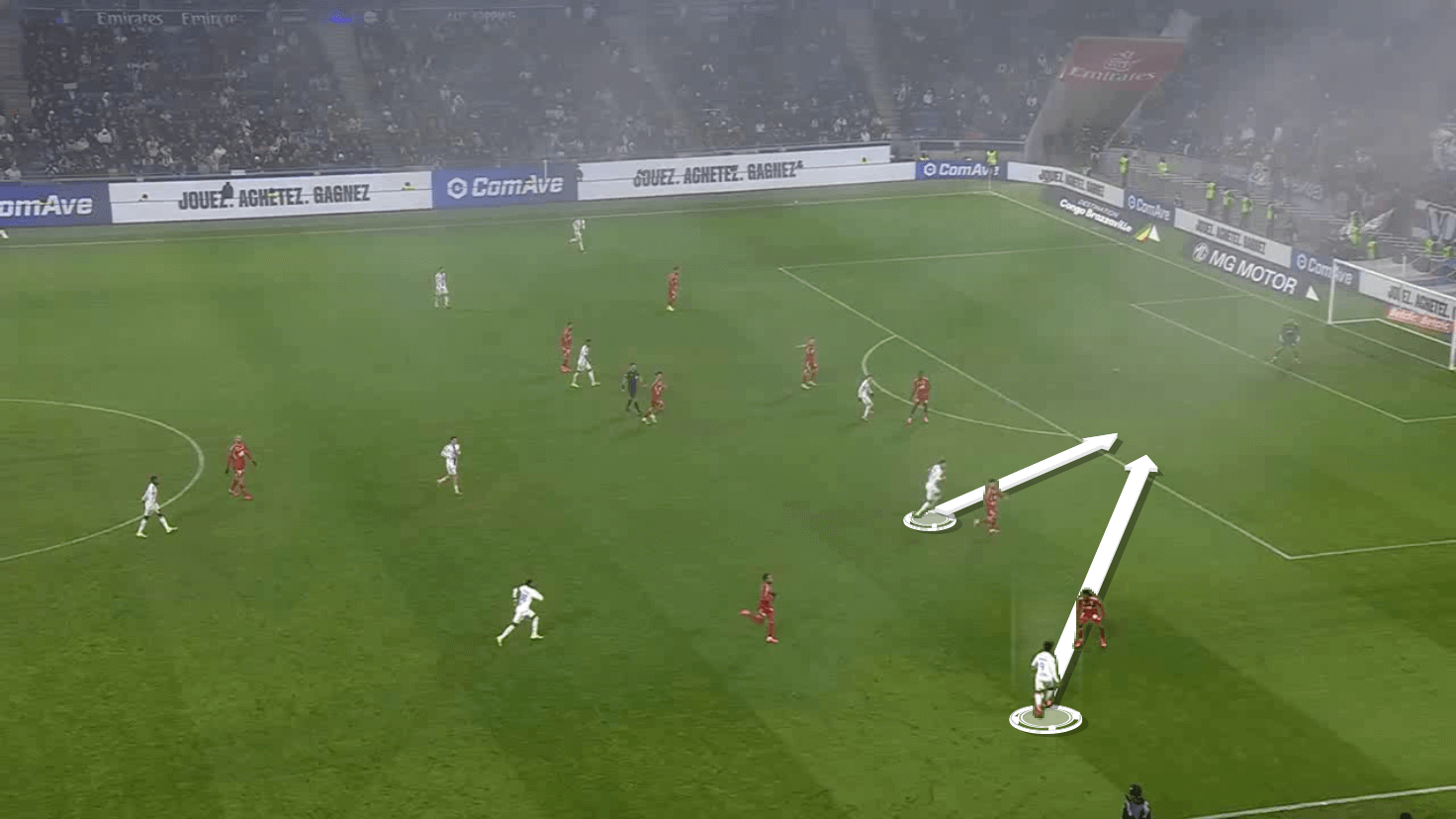 This scenario creates more space for Lyon midfielders to progress forward, which we will take a look at later.