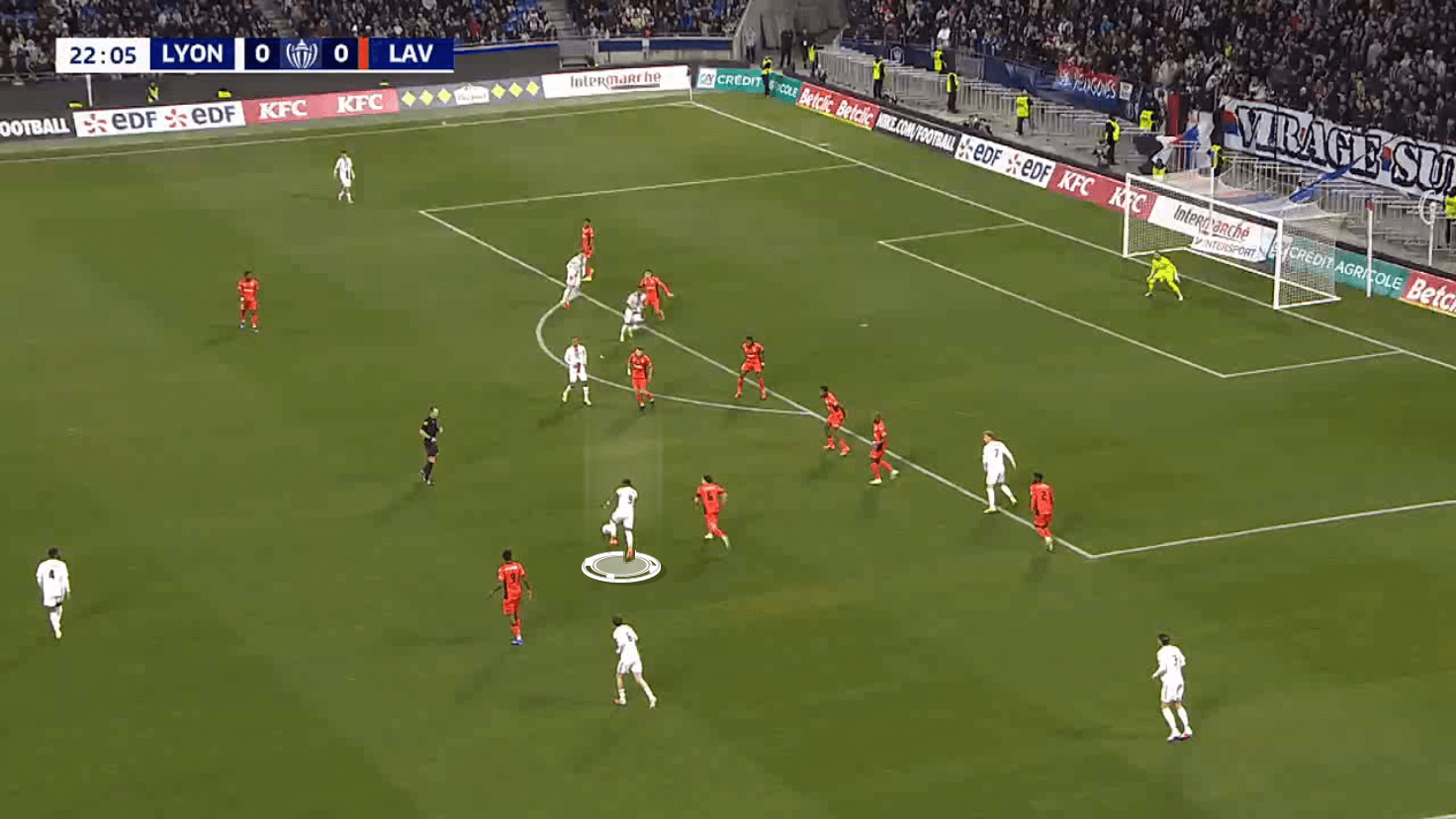 It is clear that Lyon are letting him drift into many attacking spaces, even through midfield, so he can get the ball at his feet and look for those passes in behind that he can deliver.
