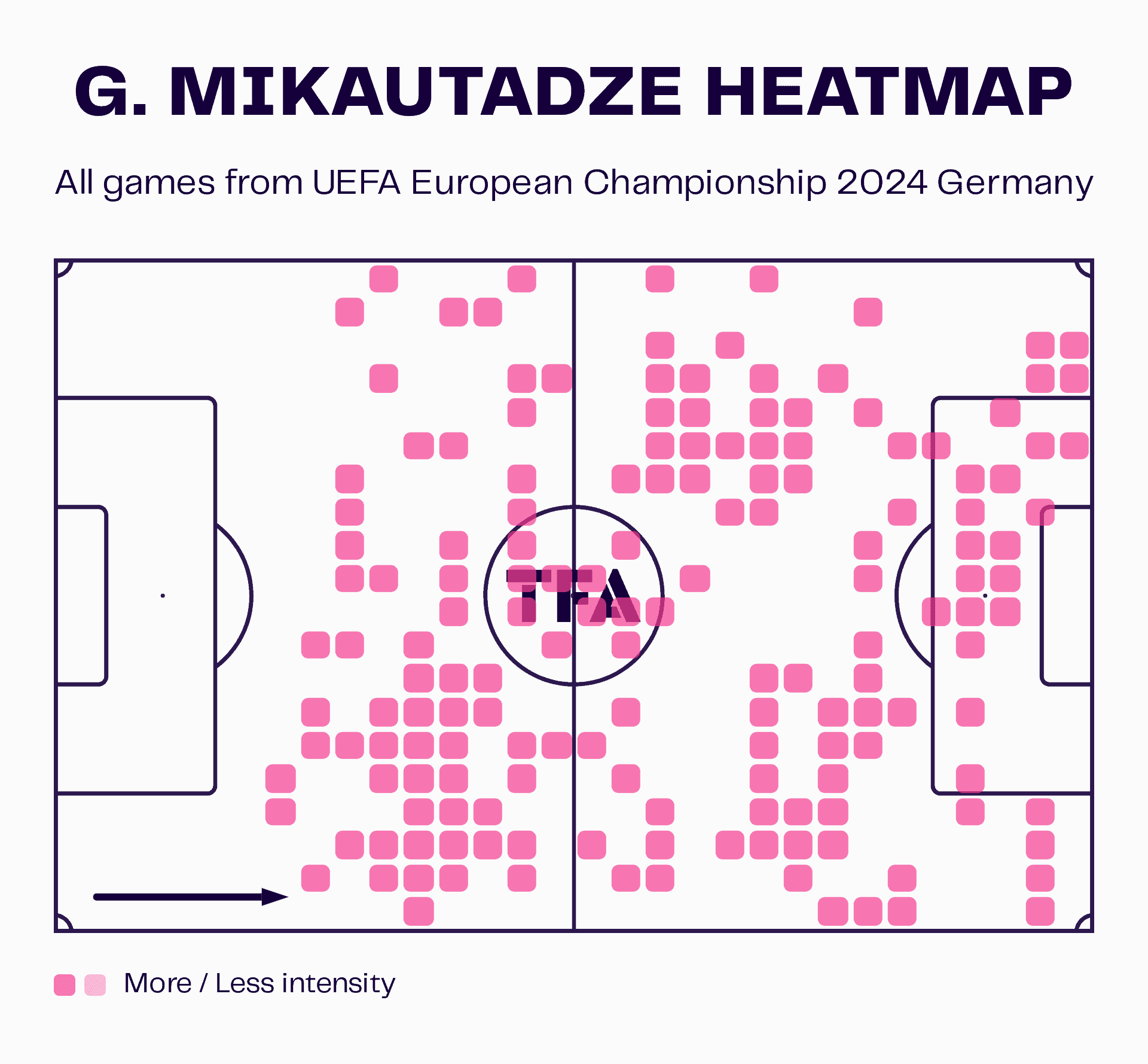 Still, it highlights that Mikautadze is just as important a player for Georgia when running through on goal as he is when dropping into pockets of space to connect the play.