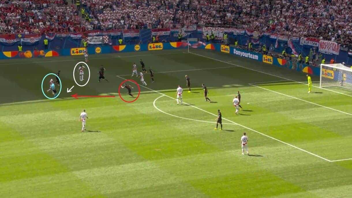 With him now in a position to punish Croatia for not getting back quickly enough, all that remains is for Jasir Asani to send the ball into his path in a typical diagonal fashion, and he is then able to get a shot away at goal.