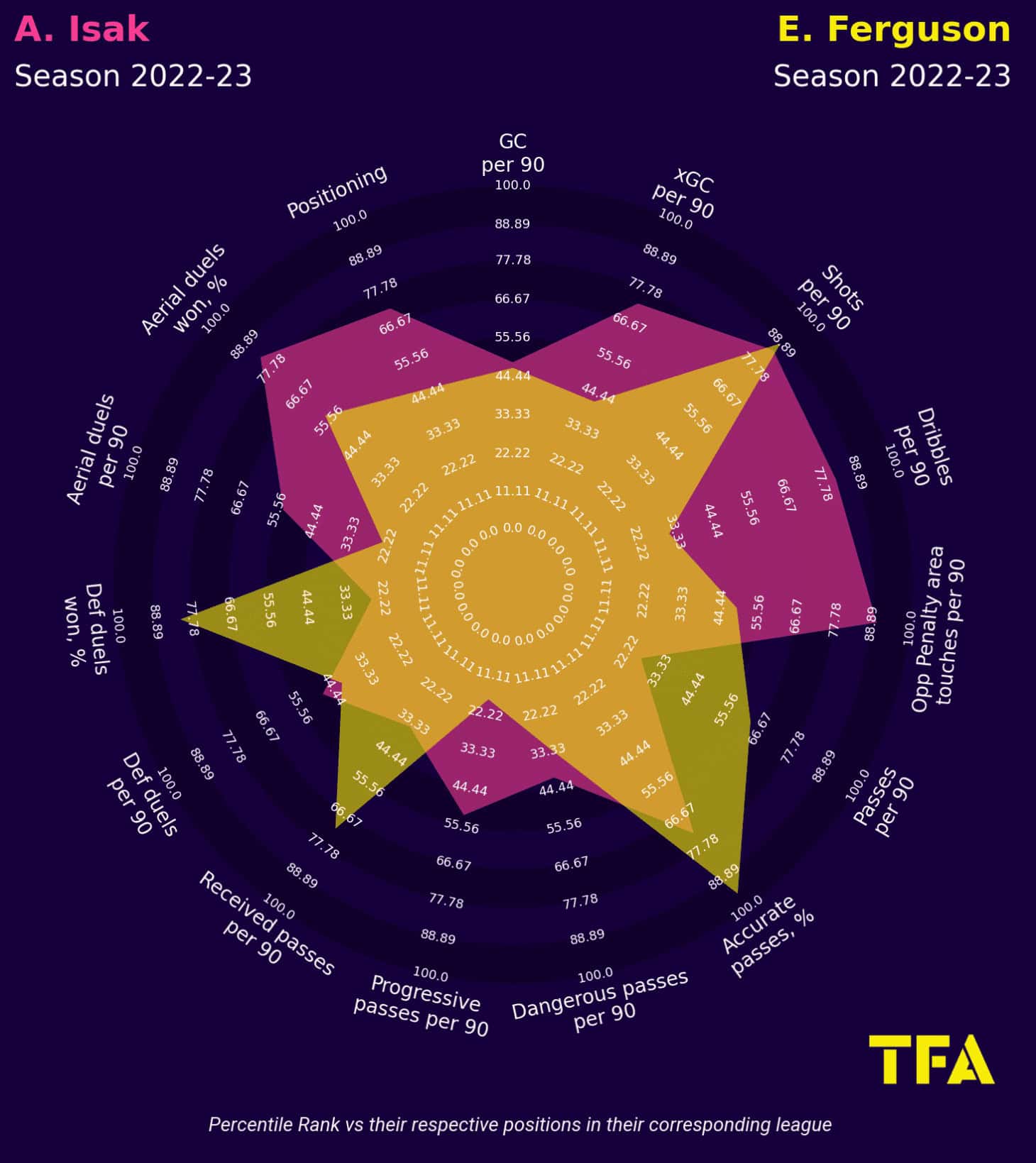 If we compare Ferguson to both the Magpies front men, we can see that he and Isak share some similar qualities.