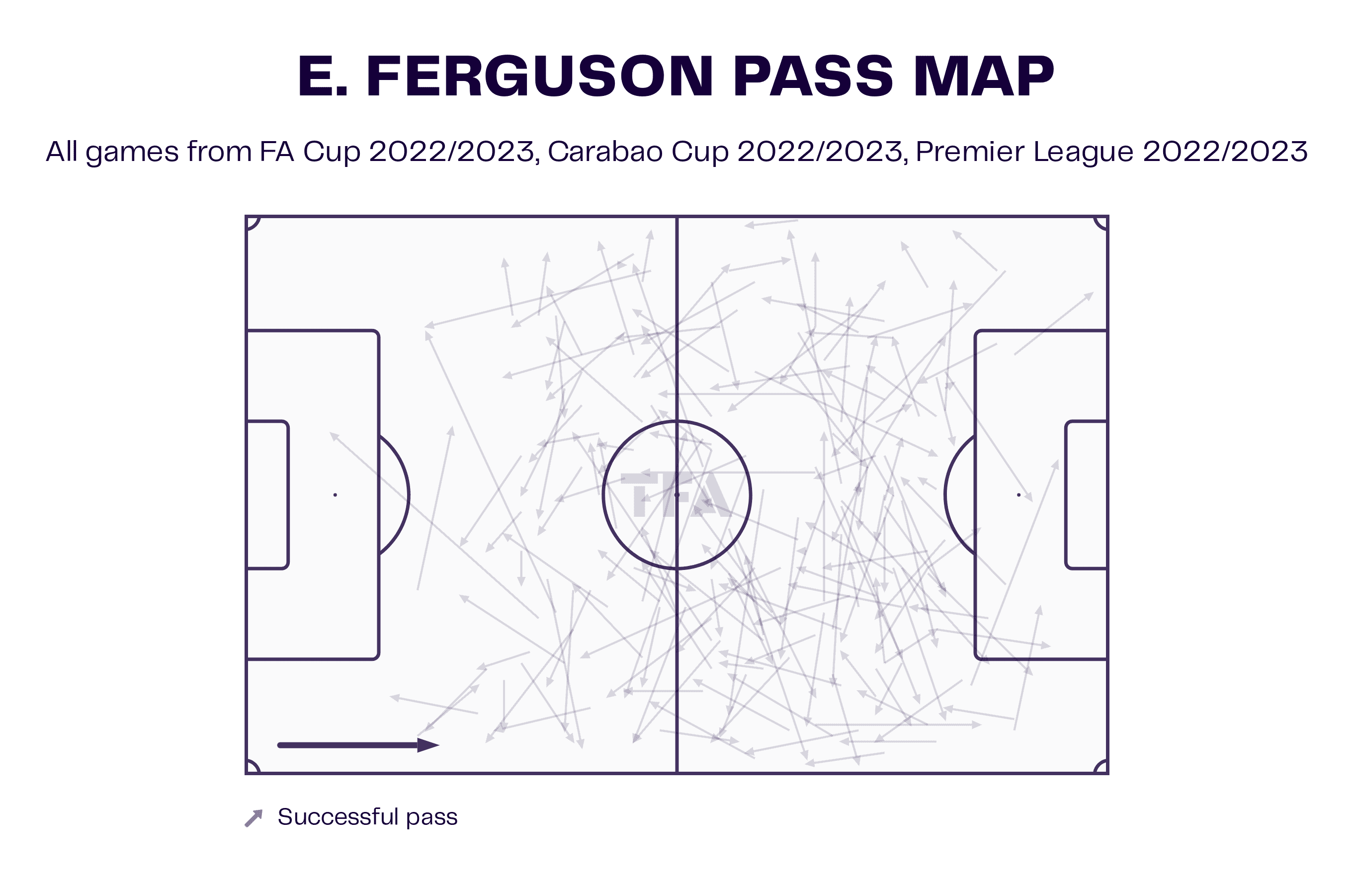 If we look at Wyscout data, we can see that Ferguson averages a pass accuracy rating of 85.1% from his 12 Premier League games to date.