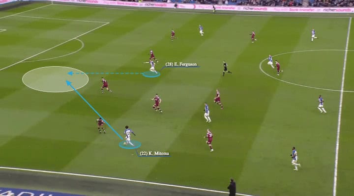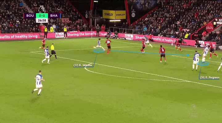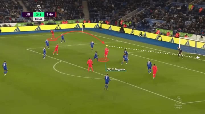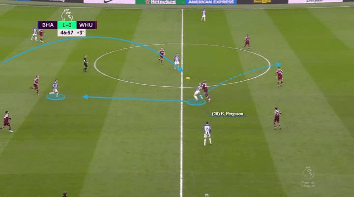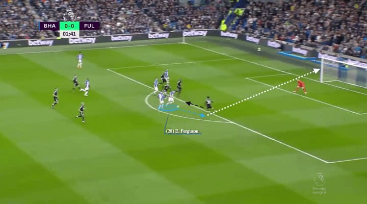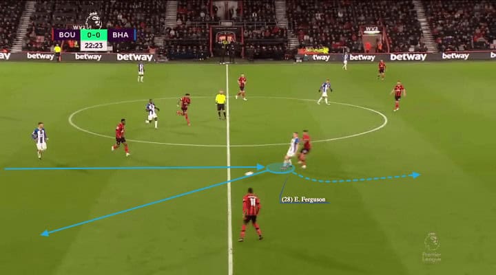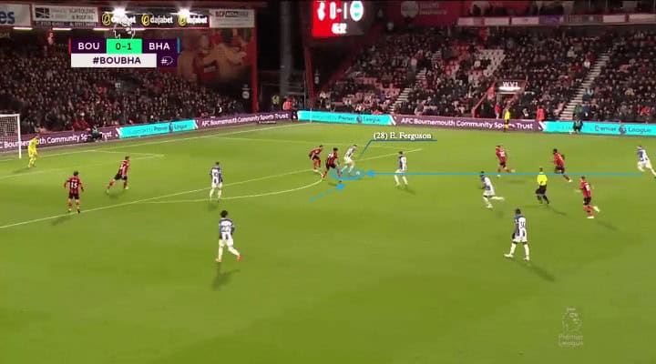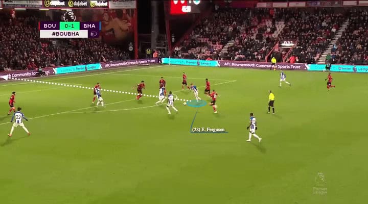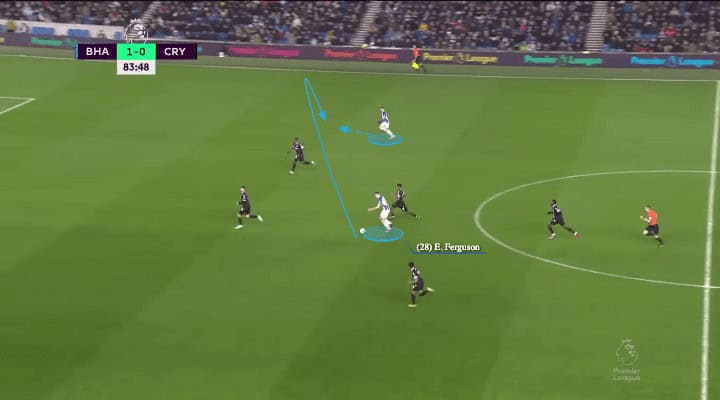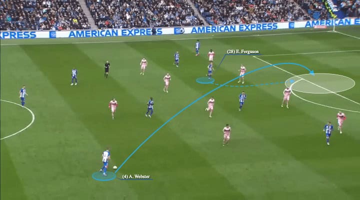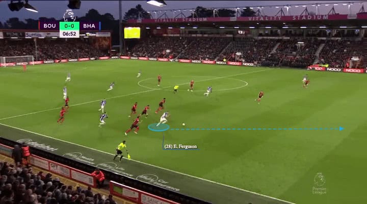 The only real occasion you will see Ferguson travel with the ball at his feet is when Brighton are looking to counterattack.