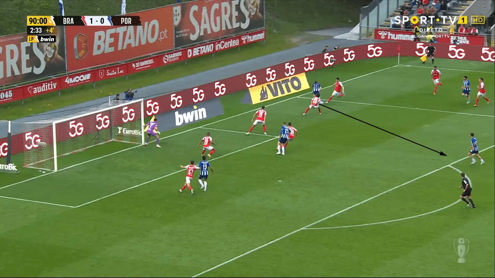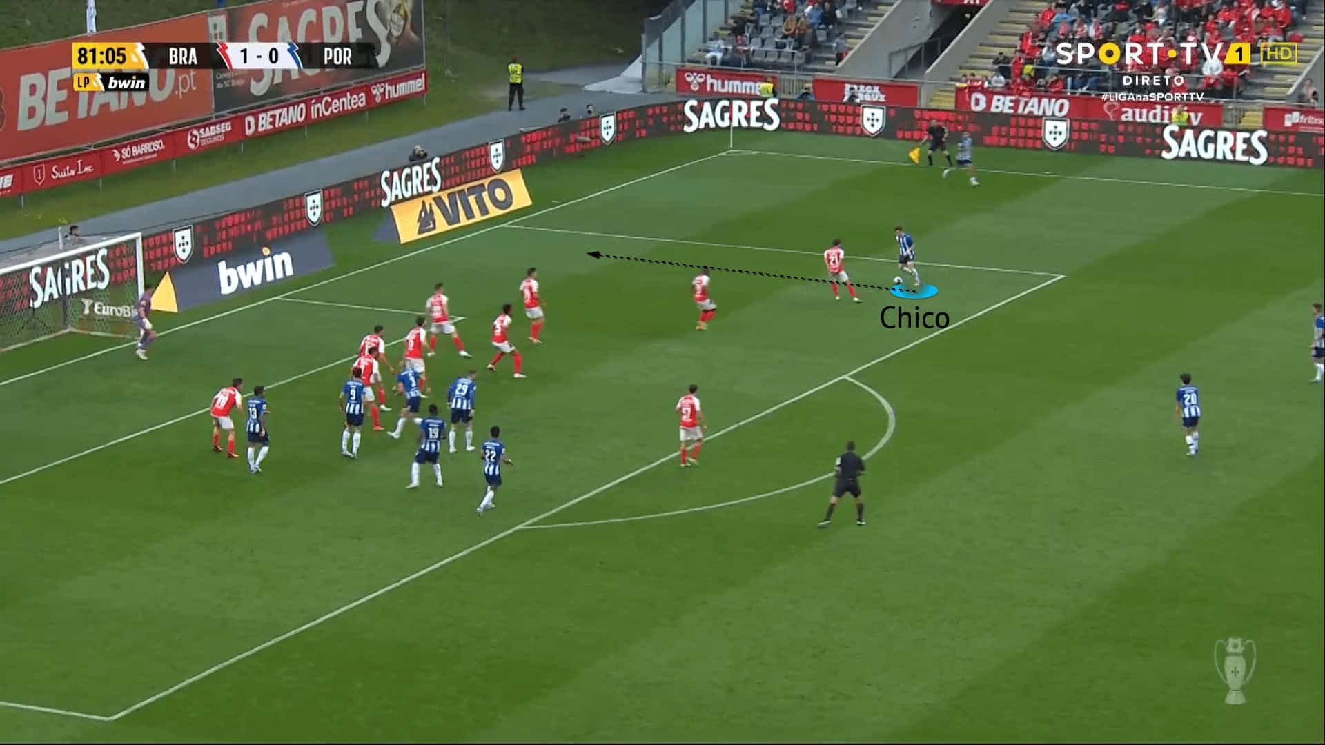 Attacker Ricardo Horta is aware of Chico’s intentions in these positions, looking to cut inside and release a shot on goal.