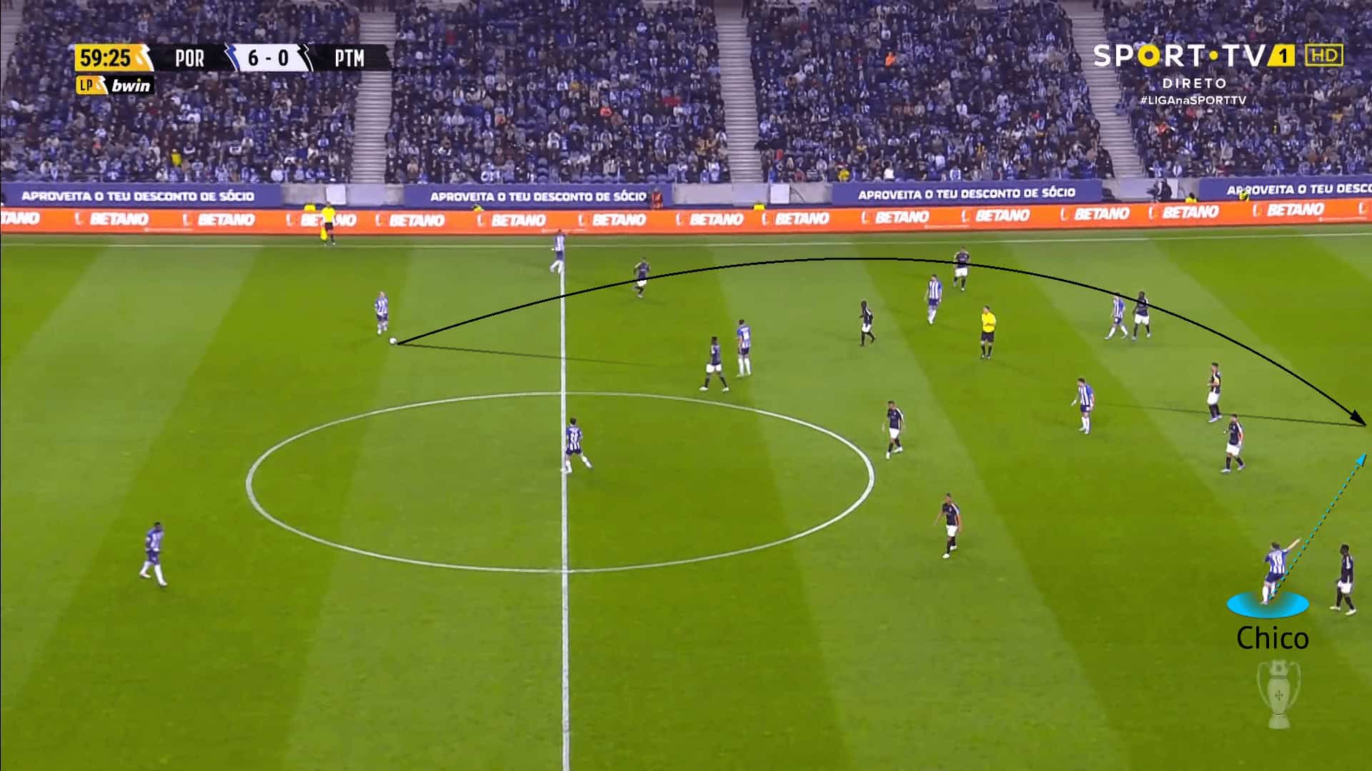 Chico’s touch to control the lofted pass over the top of the Portimonense defence took him wide to the left.
