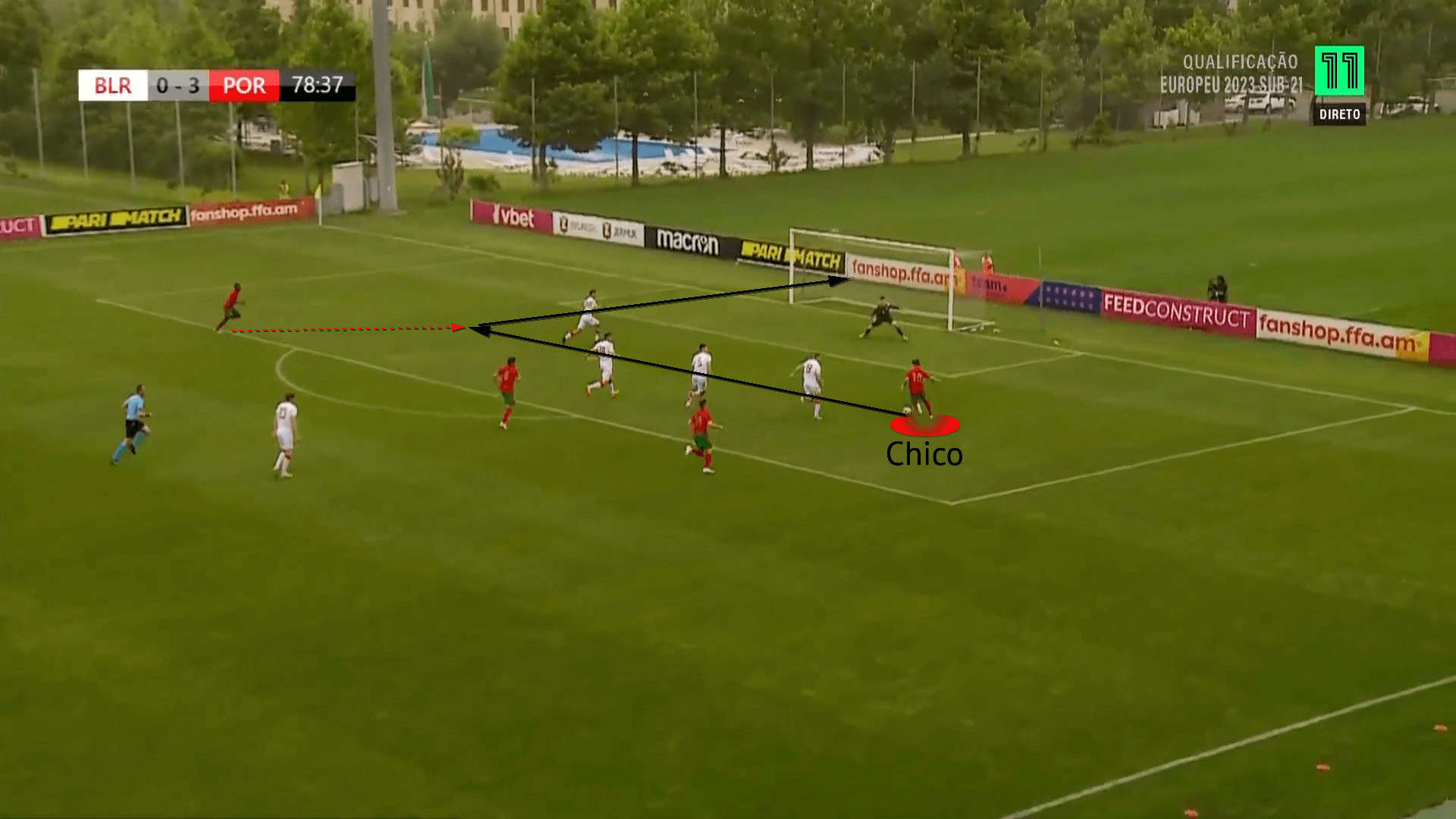 This Conceição-Mário width-holder partnership was prevalent for both FC Porto and Portugal’s Under-21s, with Chico’s brother Rodrigo Conceição another width-holding right-back for the Under-21s.