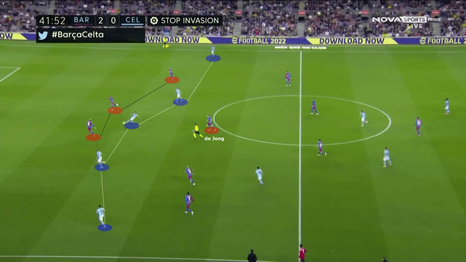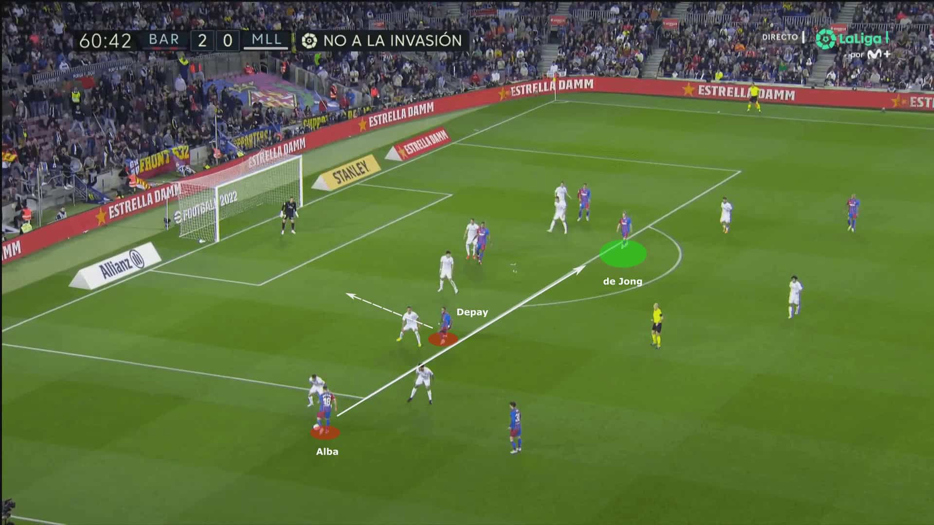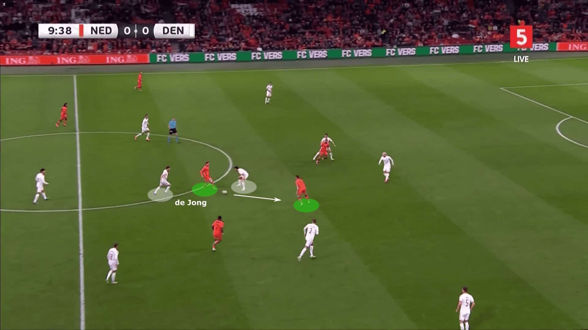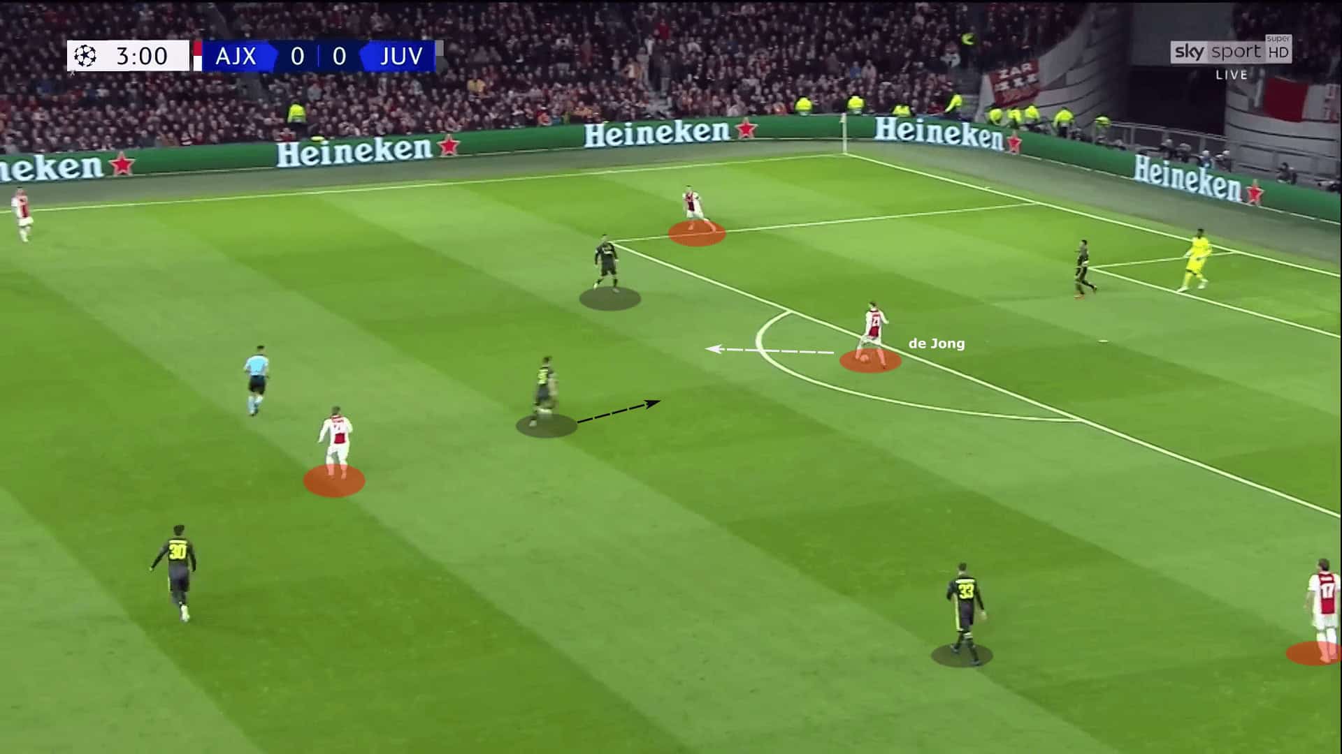 An increasingly exciting aspect of De Jong’s approach is his awareness of when to execute penetrative runs. He recognises when to advance and when to remain disciplined and hold his position.