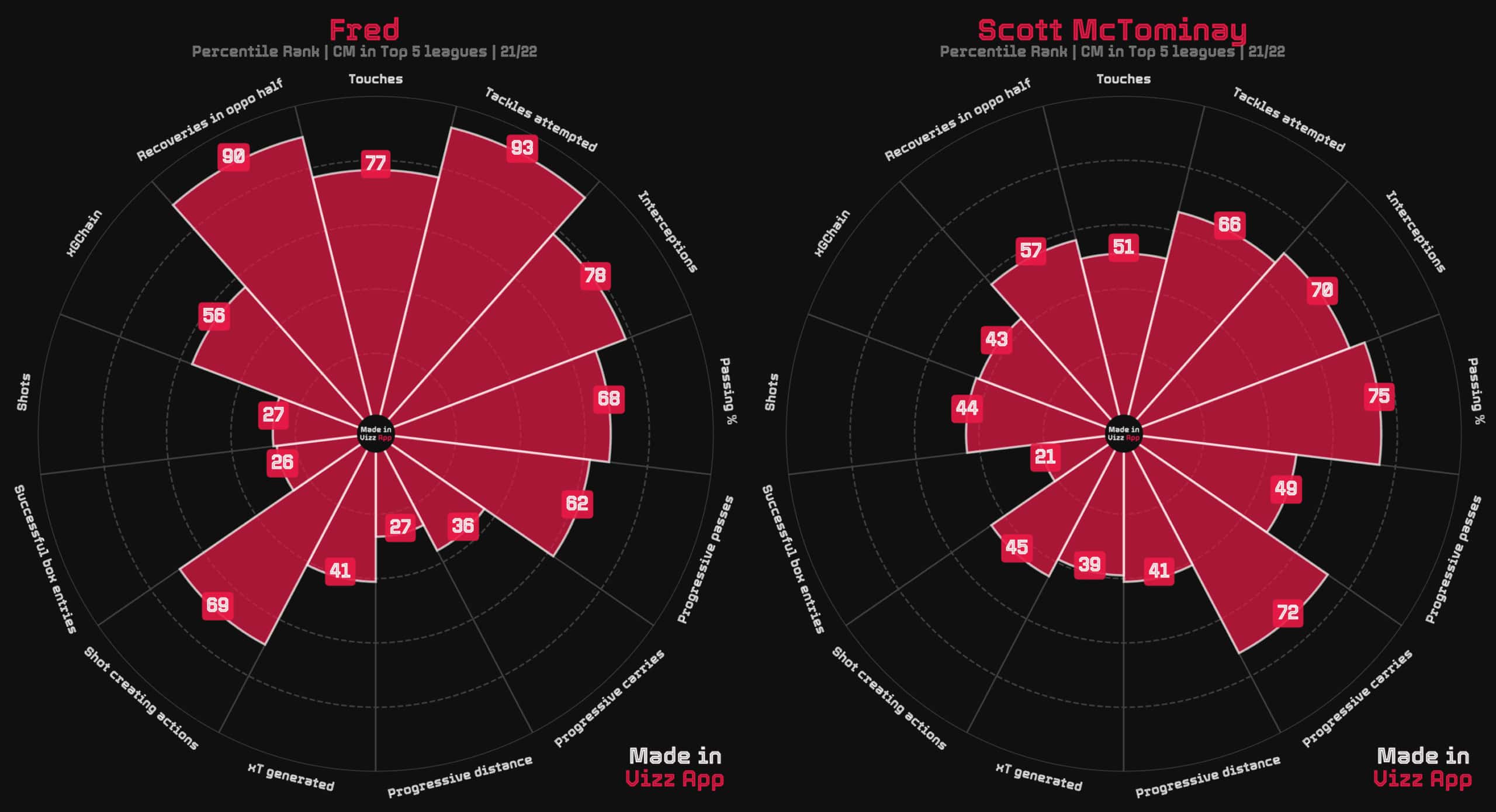 But do United need to sign a new proven ball-winner to complement de Jong and get the best out of him? Let’s look at McTominay and Fred’s profiles.