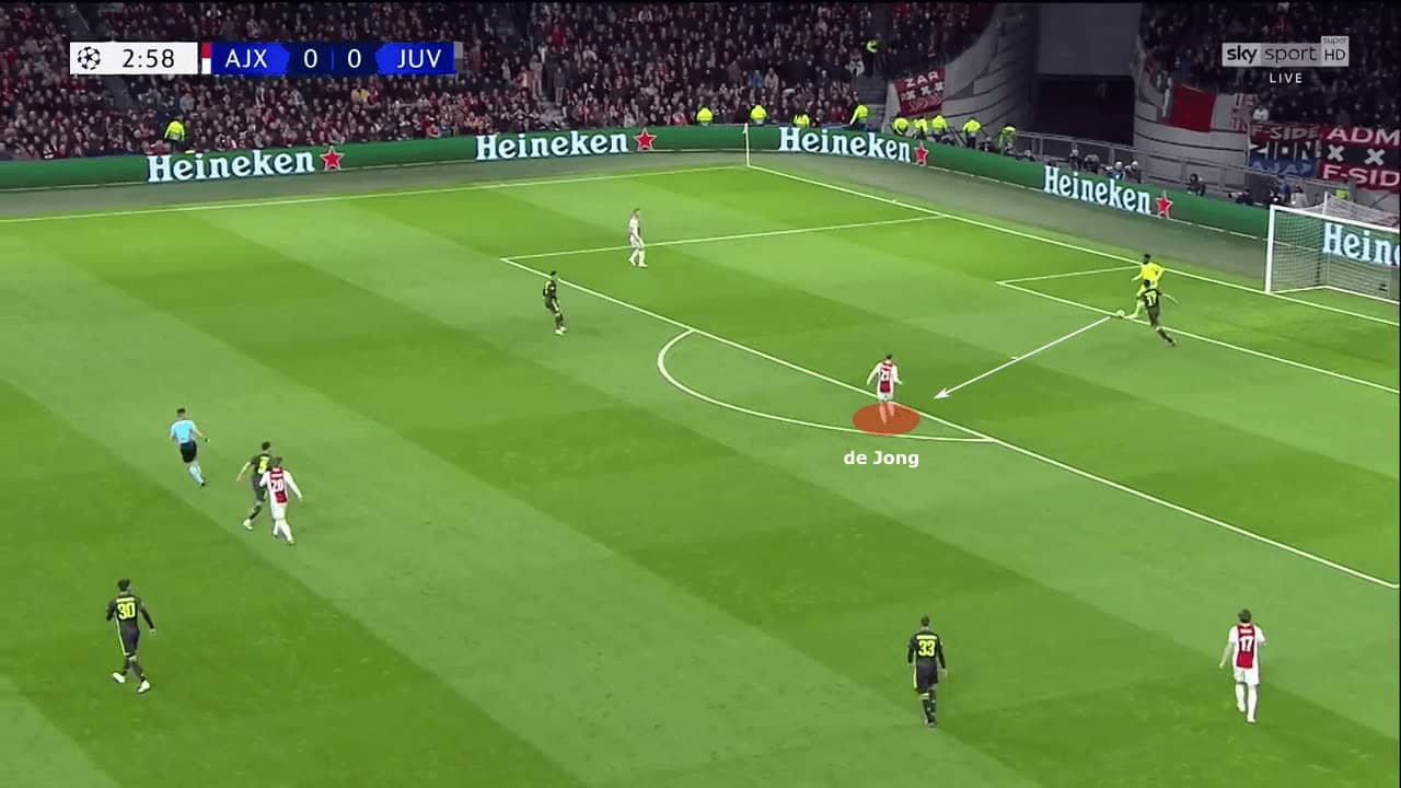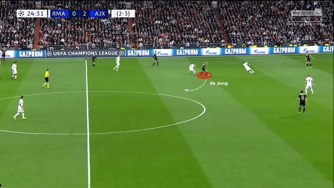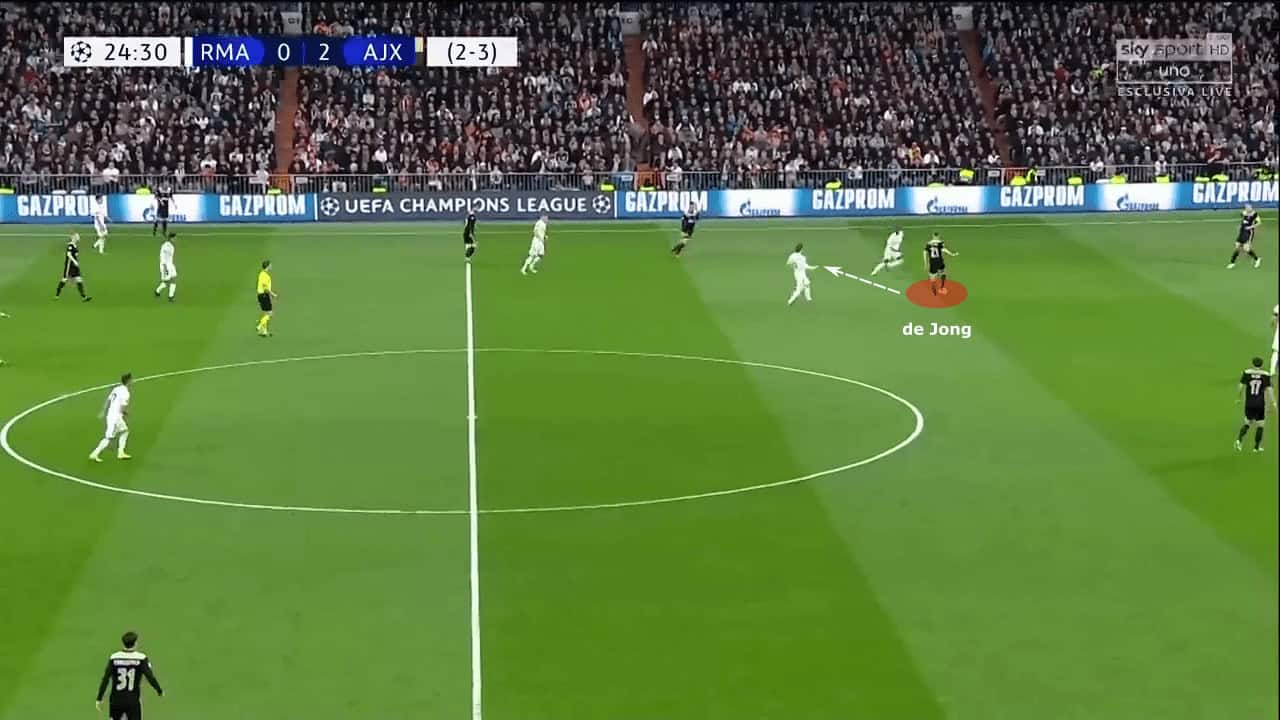 Very often, he would drop in between the centre-backs to dictate the flow of the game. The goalkeeper would use him as an outlet. De Jong was the player who broke the first line of pressure and moved the ball forward with incisive, line-breaking passes.