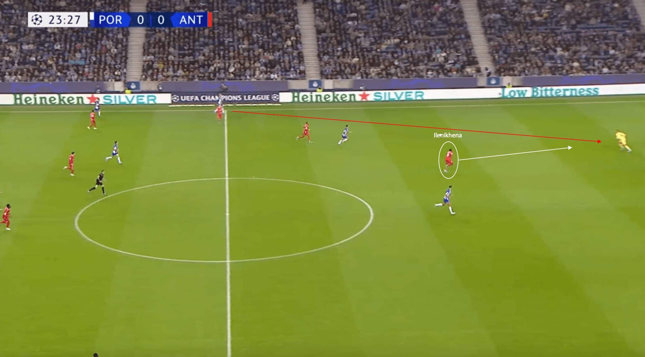The image above shows an example of the pressure that Ilenikhena can consistently put on opposition goalkeepers, as this recent Champions League match against FC Porto illustrates.