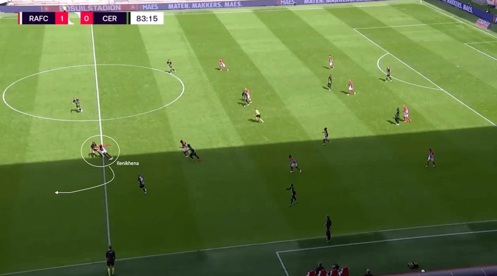 As a result, when the ball found its way to Janssen, Ilenikhena already found himself in a good position with some space to take a touch and settle the ball before attempting a shot.