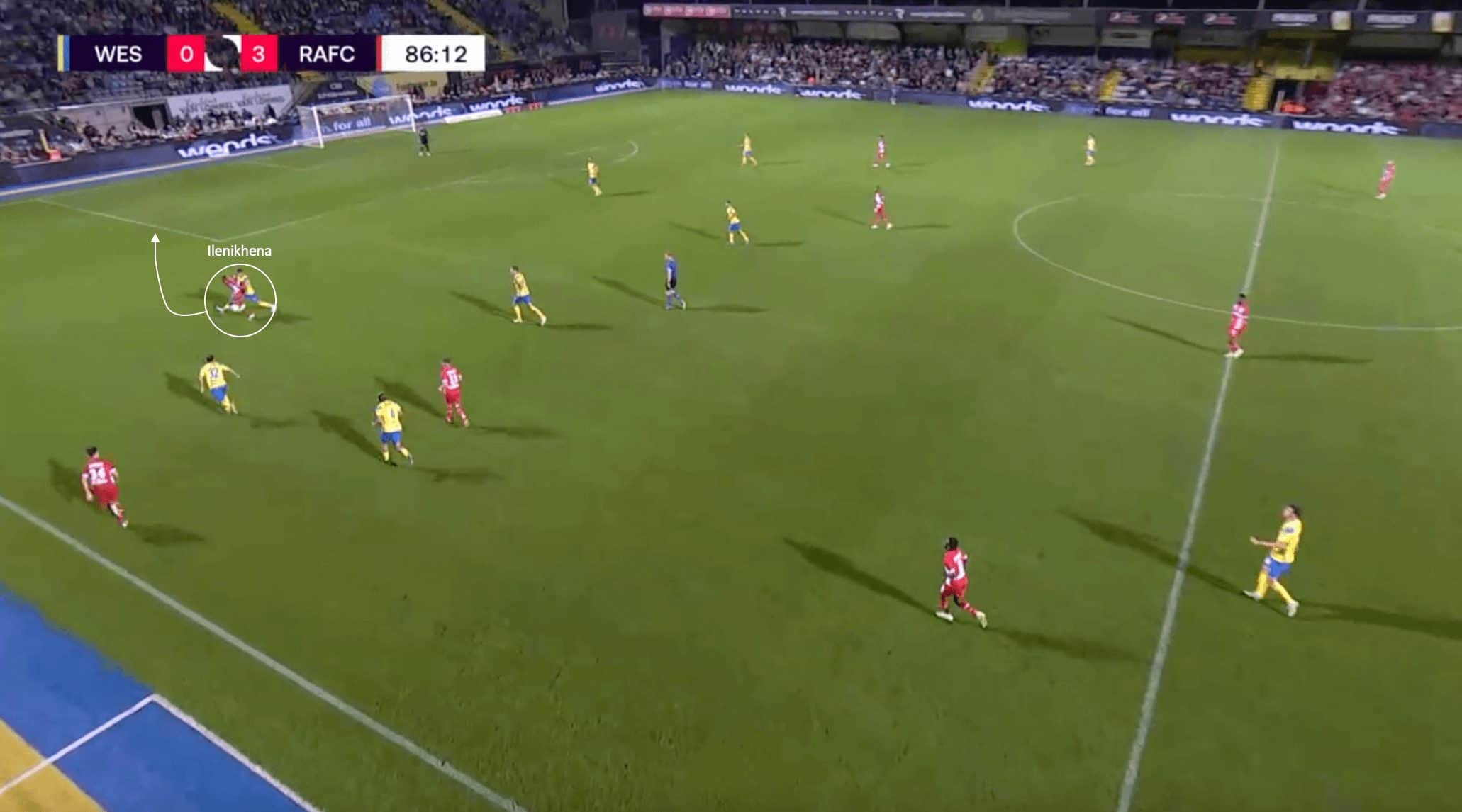 He is also aggressive, with Ilenikhena not afraid to take on challenges against opposition players or look to put pressure on opposing back passes, forcing a few mistakes from opposing goalkeepers this season. Additionally, he plays with his back to goal and drops into deeper pockets of space in the midfield areas.