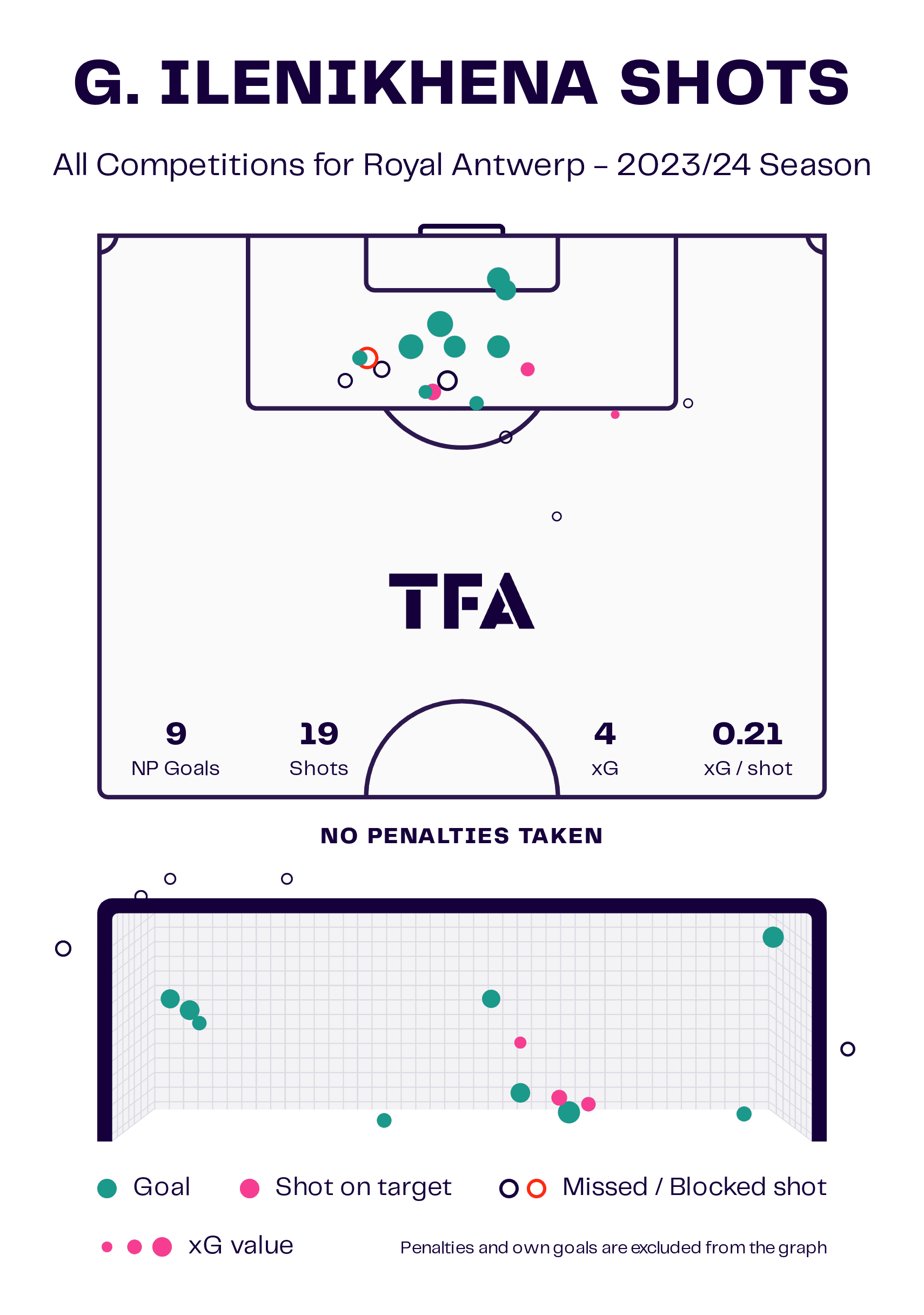 As this section has been able to illustrate, George Ilenikhena has been able to demonstrate this season, albeit with a limited number of minutes, that his future is bright from a goalscoring and chance creation perspective and the step up to Belgian football from Ligue 2 did not come too soon.