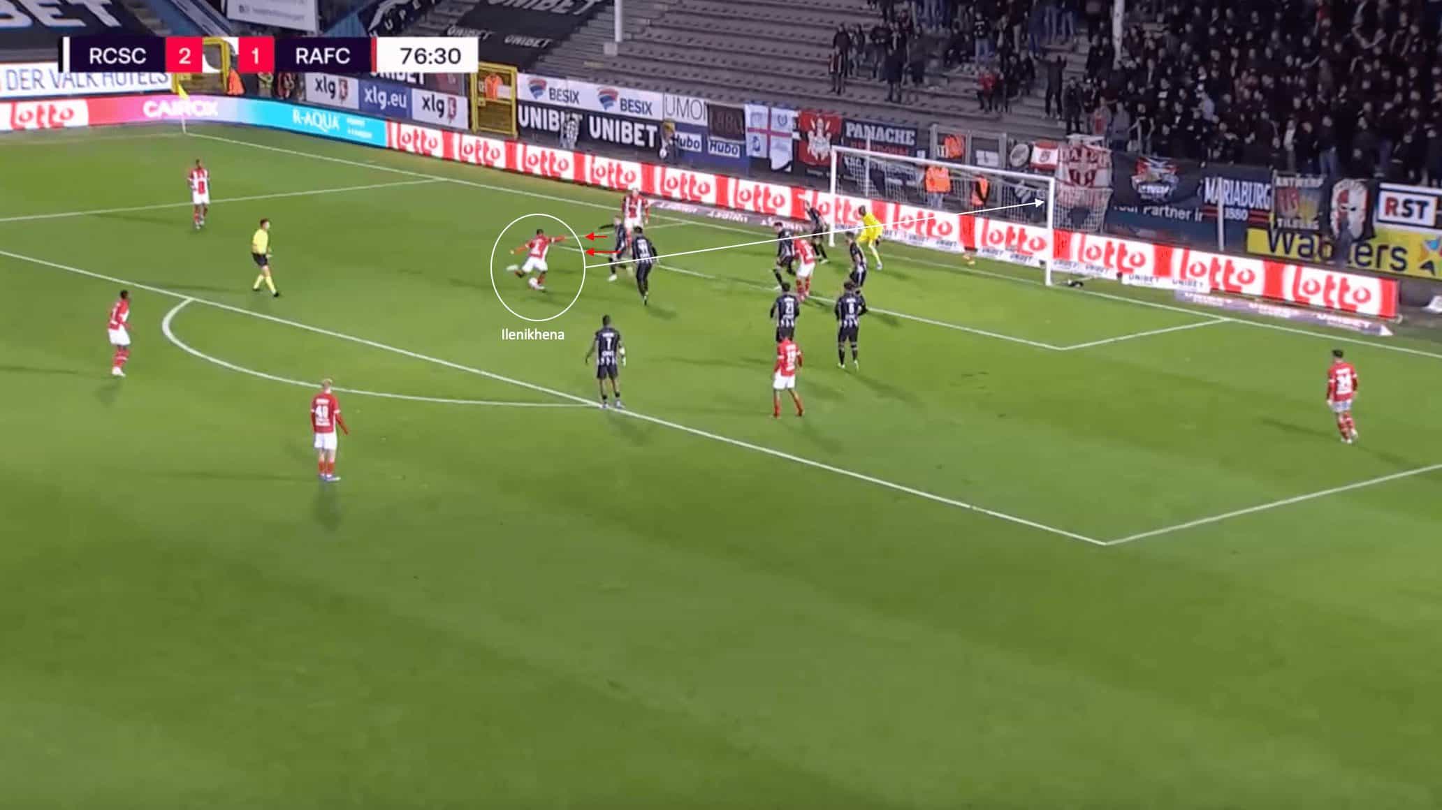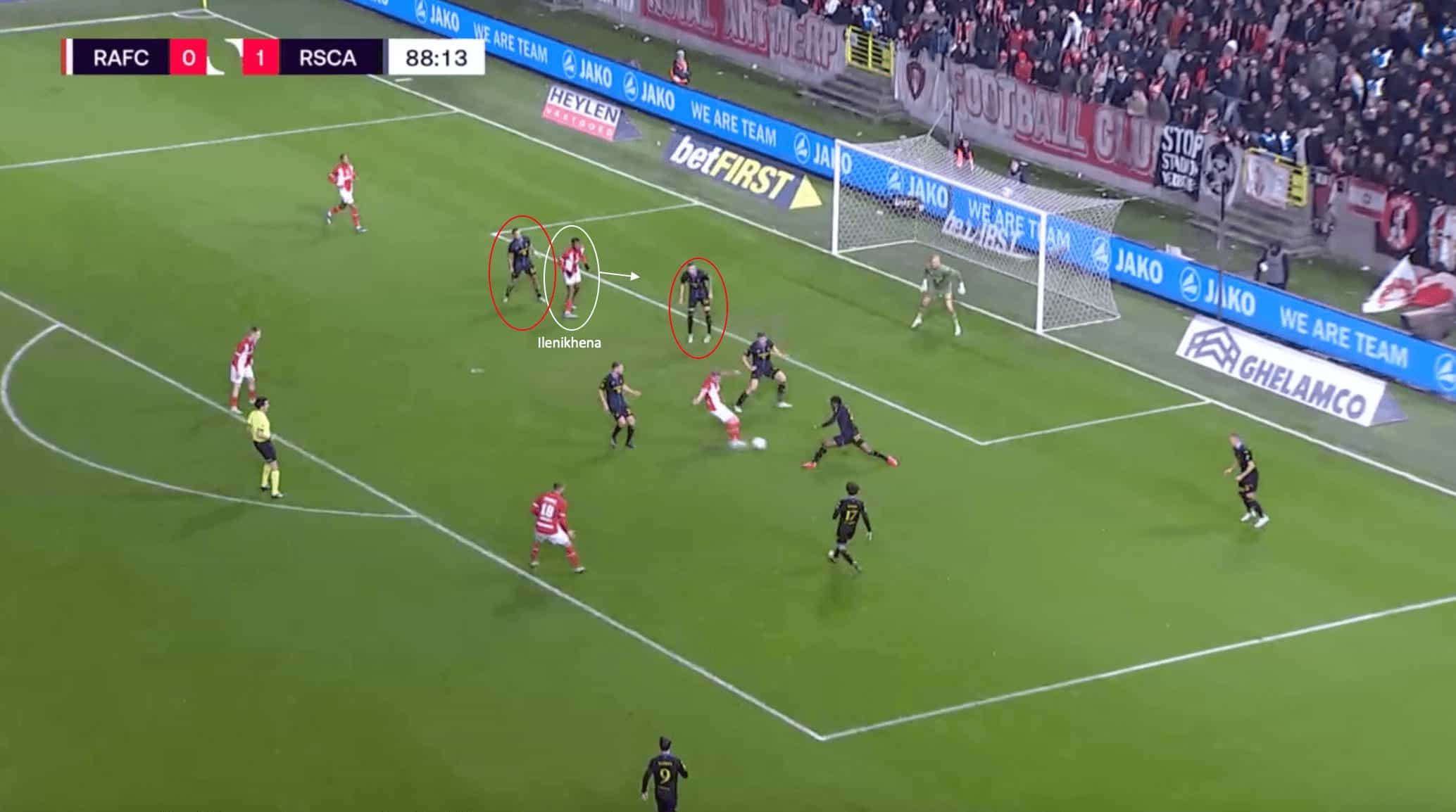 The recent match against Anderlecht shows an excellent example of Ilenikhena’s ability to find space in tight areas and demonstrate a good finishing ability.