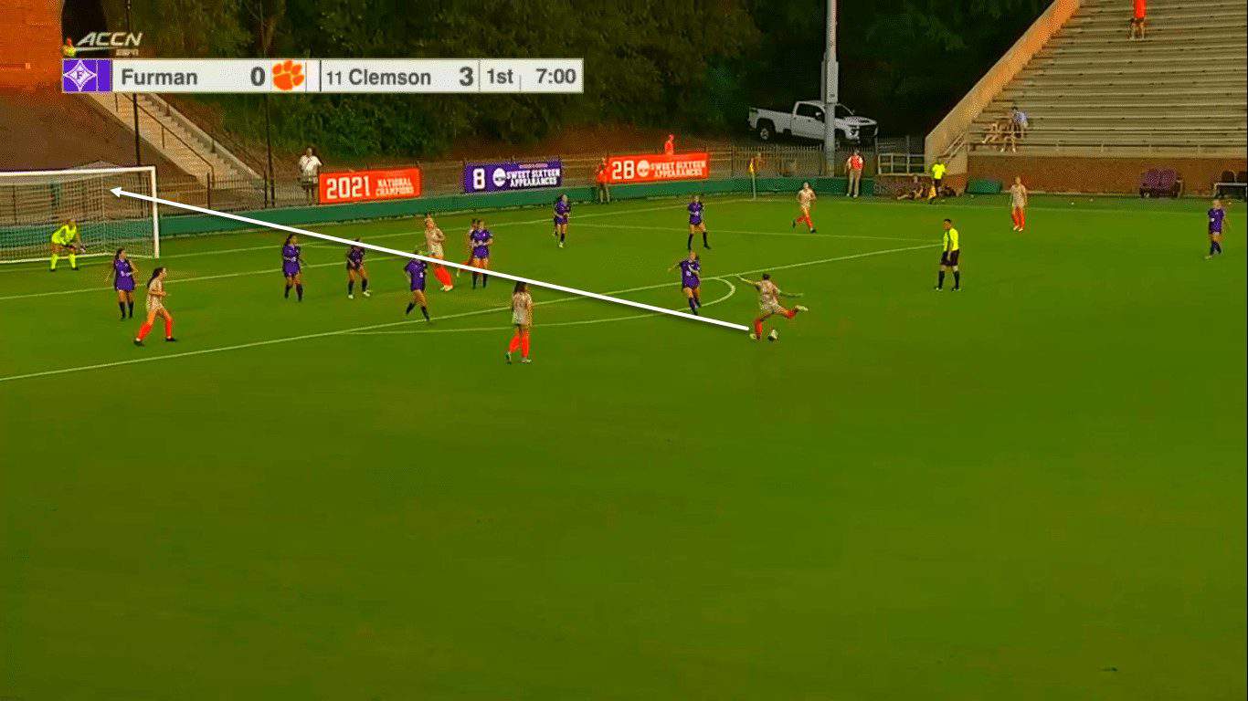 In addition to shooting after getting the ball inside the box, Hershfelt also masters shooting from distance and has proved on many occasions with Clemson Tigers that she can be extremely dangerous when having the ball inside the final third. In fact, her outstanding physical strength allows her to have great control of the ball and an impressive ability to make it fly with great power towards the net.