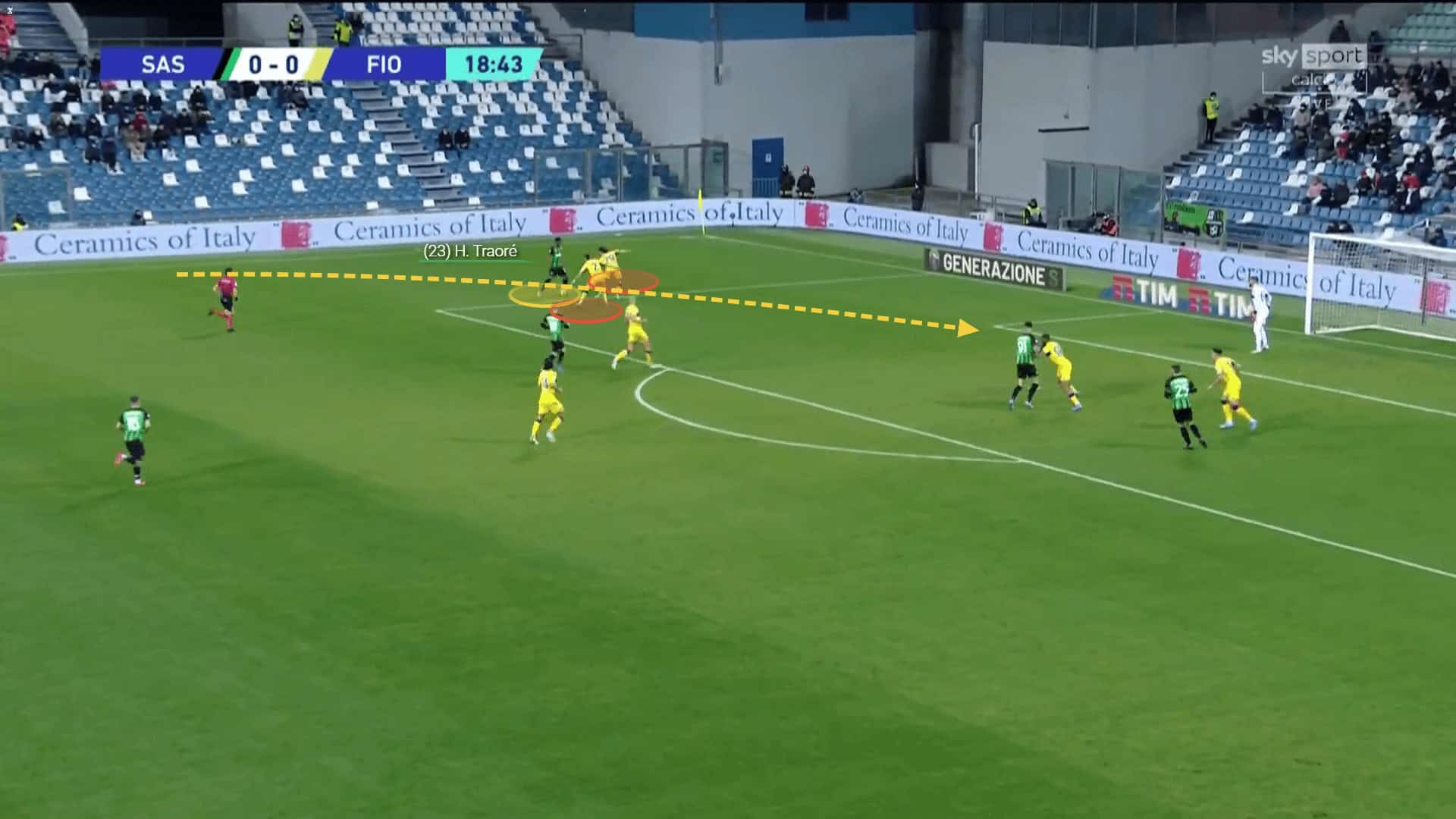 Traorè supports the team’s actions from the left attacking midfield position in Sassuolo’s most used 4-2-3-1 formation, although his impact is the most noticeable centrally. His positioning and technical abilities have allowed him to score six goals in the team’s last eight league games, scoring a brace in their 2-1 win over Atalanta.