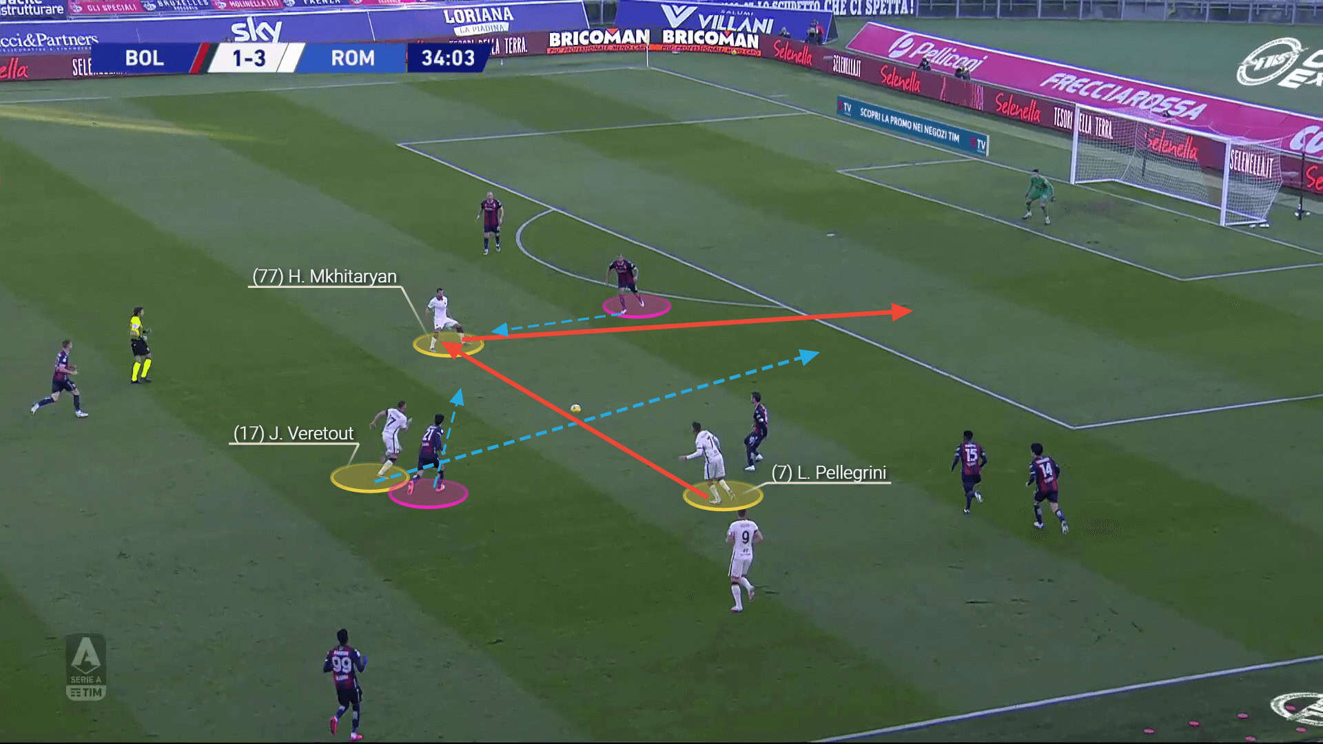 His assistance in opening the passing lanes allows Roma much more flexibility in their attacking actions.